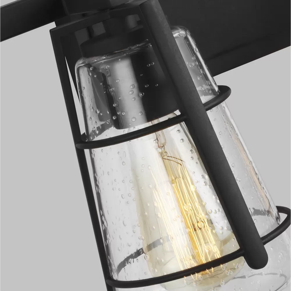 Adelaide features Clear Seeded glass shades that subtly diffuse the lamping while allowing the exposed bulb to be a central design element of the fixture in a Midnight Black finish.
