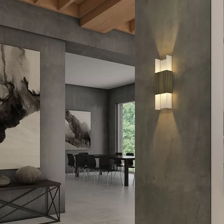 The Ansa is a simple form that has been detailed and executed without compromise. The robust metal collar broadly trains the light while the light diffusing blades closely attenuates the wash pattern on the wall yielding a simple and sophisticated feel.