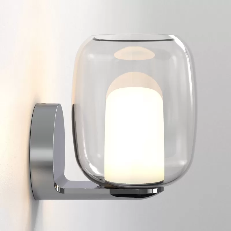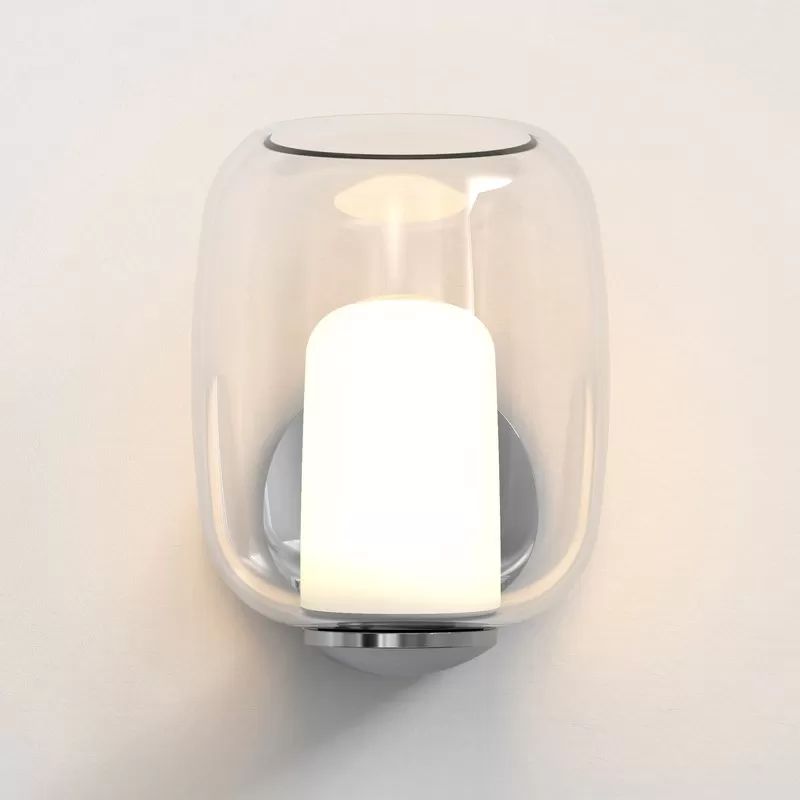 With its organic curves, the Aquina softens a bathroom scheme. Ideal beside a mirror, where it serves both as task and ambient lighting, it features a blown glass shade that rests upon a seamless metal arm.
