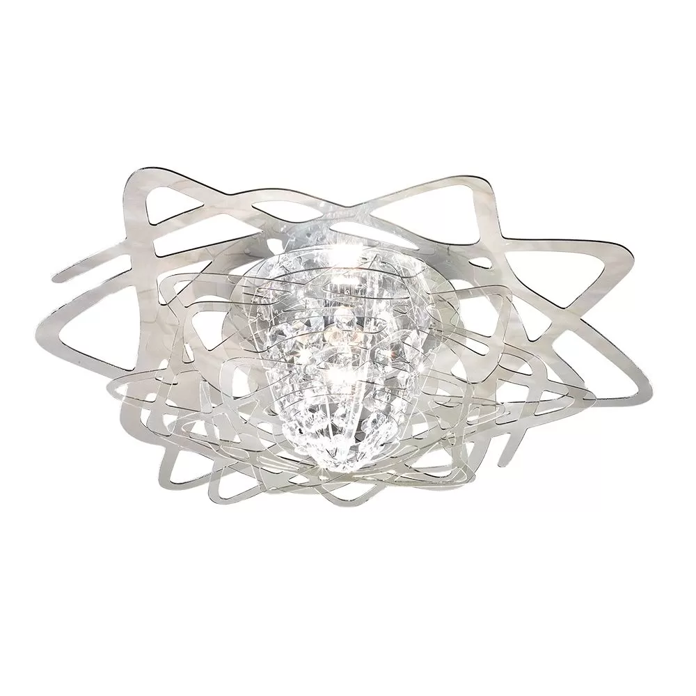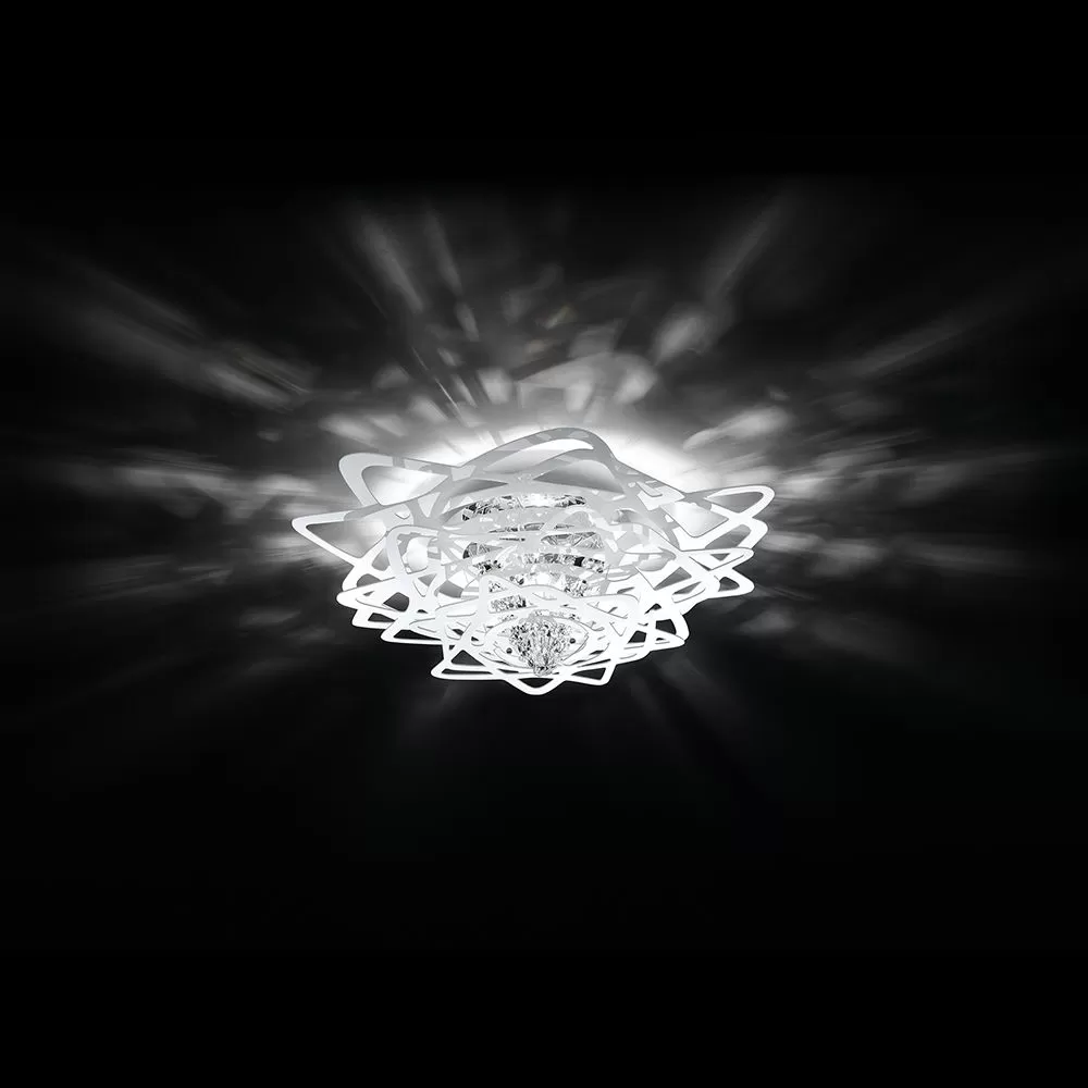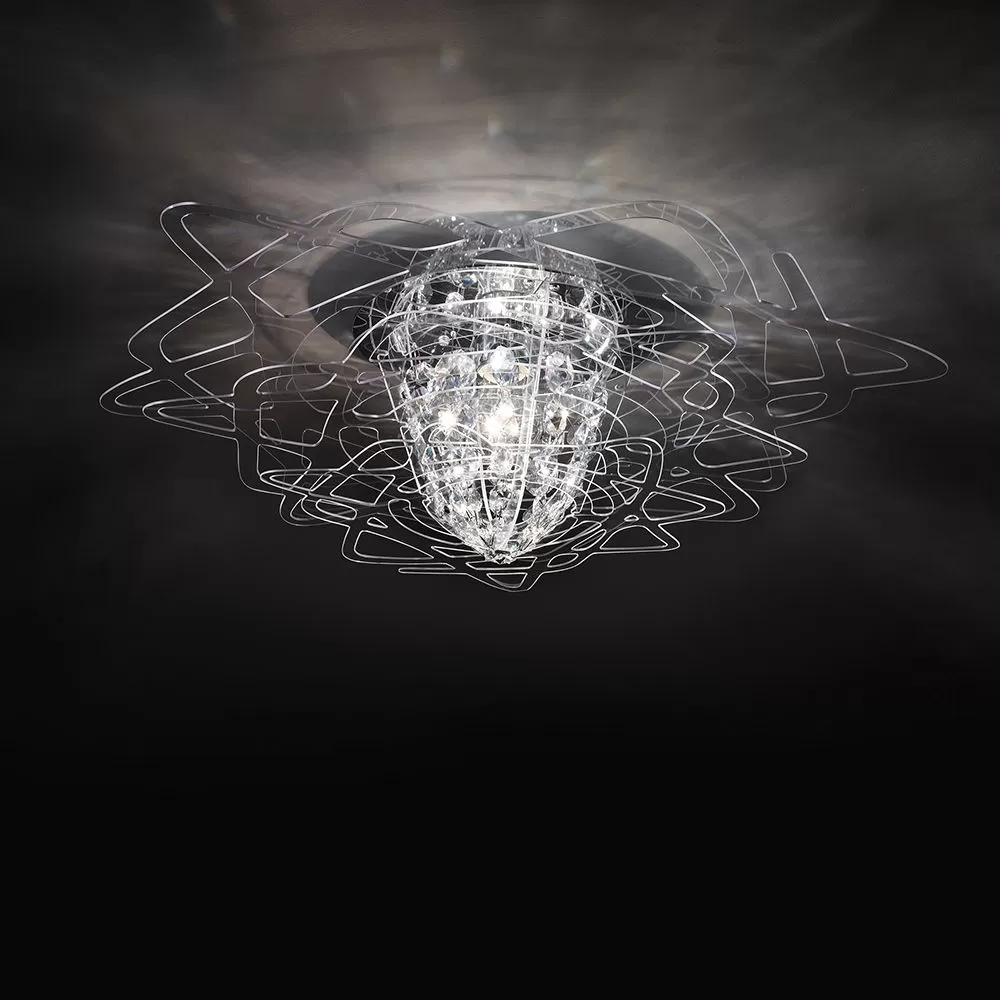 A cascade of crystals amplifies the light of this refined ceiling-lamp, which appears to dance in time with its reflections, gently dispersing its magical effect into every corner of the room. Thanks to its ingenious magnetic base, a practical choice with more than an ounce of style.