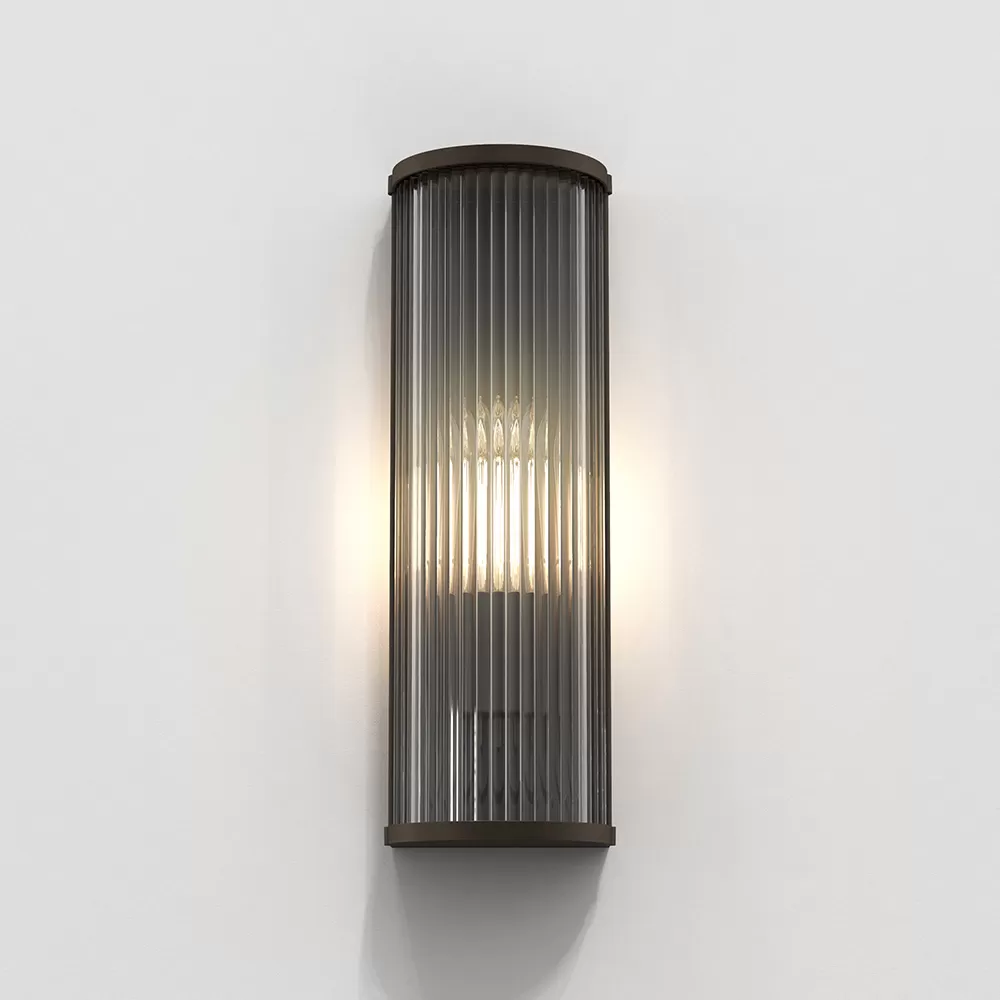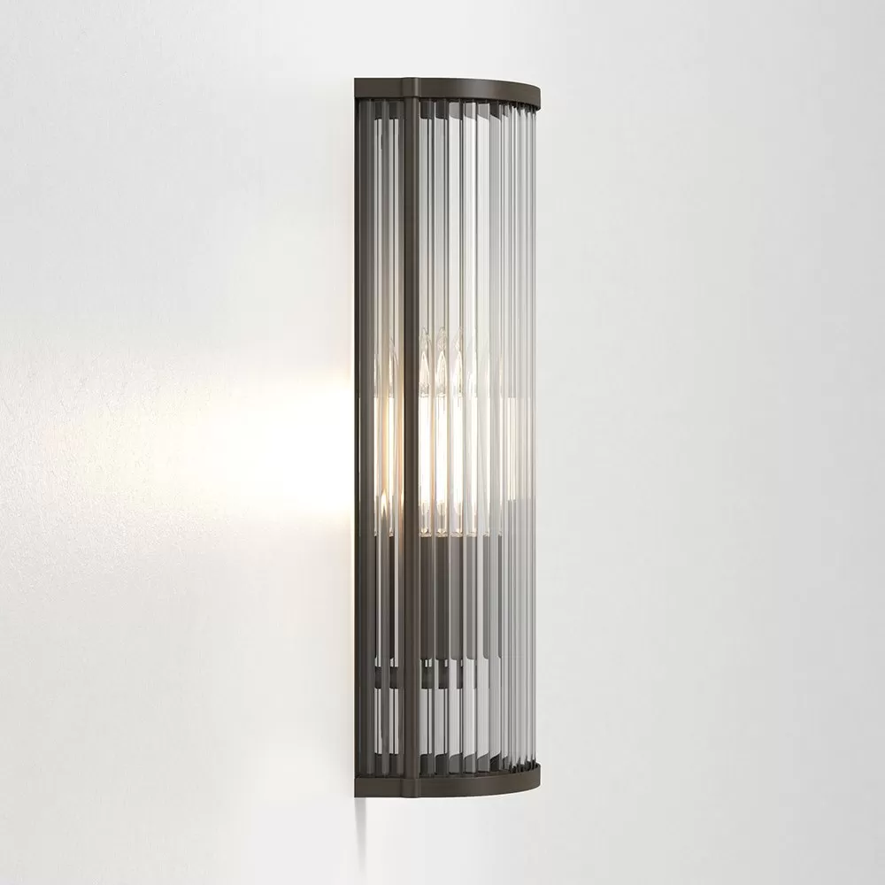 The Astro Avignon Round 375 indoor wall light in bronze is inspired by vintage Art Deco luminaires and is crafted on a large scale to add drama and presence to a space. This elegant wall light works great in studies, hallways or dining spaces and provides vibrant yet cosy, glare-free illumination through sparkling clear glass rods. The Avignon is dimmable when paired with a dimmable bulb and must be mounted vertically. Cast in zinc using an energy-efficient process, the Avignon provides a high quality, robust and durable finish. A reinforcing diffuser sits behind the rods of glass to provide added protection and strength. Supplied with Astro’s 3 year guarantee.