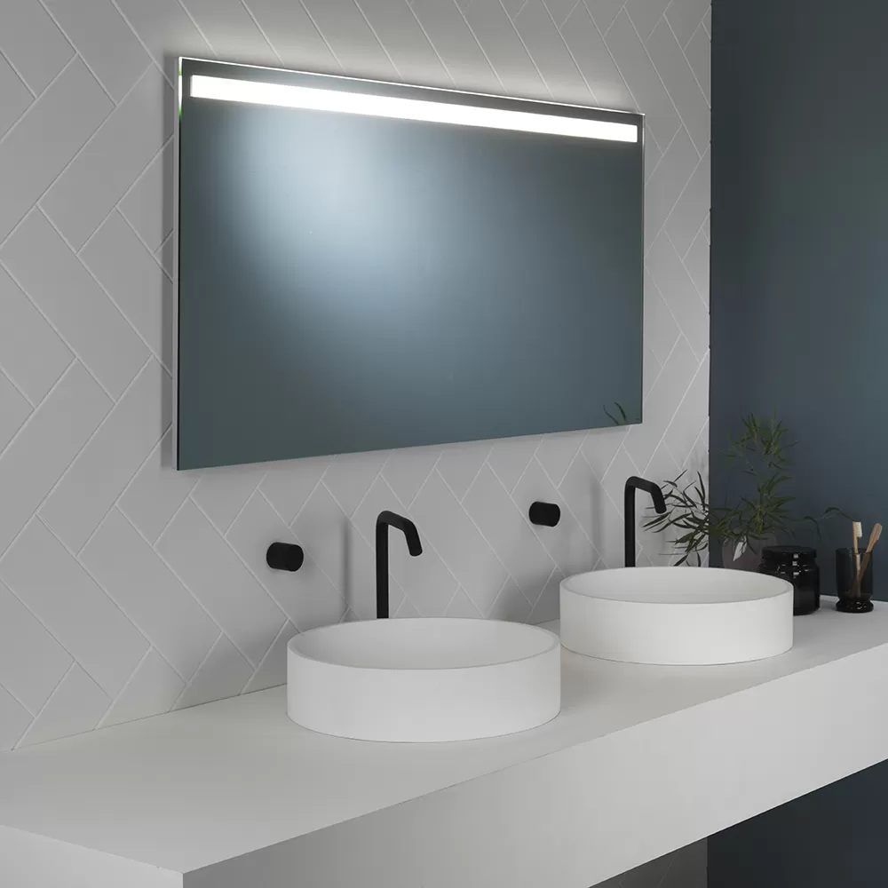 Astro Lighting designed Avlon 1200 LED wall mirror with both home and hospitality projects in mind. Avlon 1200 is damp-rated, and features an energy-efficient strip of integrated LEDs along the mirror’s upper edge. This makes it perfect for bathrooms and powder rooms, providing an extra bump of shadow-reducing light to aid with make-up application, shaving, and other ablutions.