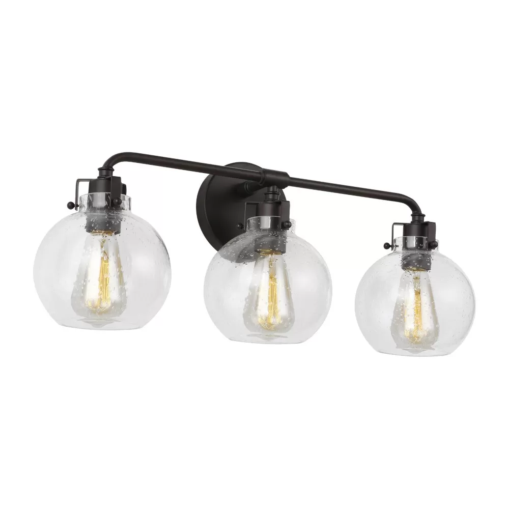 Clara features Clear Seeded glass shades that subtly diffuse the lamping while allowing the exposed bulb to be a central design element of the fixture.