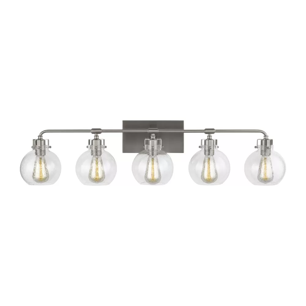 Clara features Clear Seeded glass shades that subtly diffuse the lamping while allowing the exposed bulb to be a central design element of the fixture.