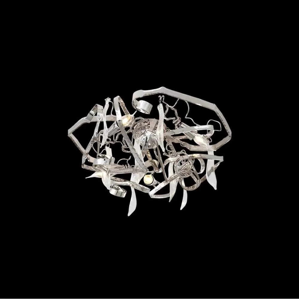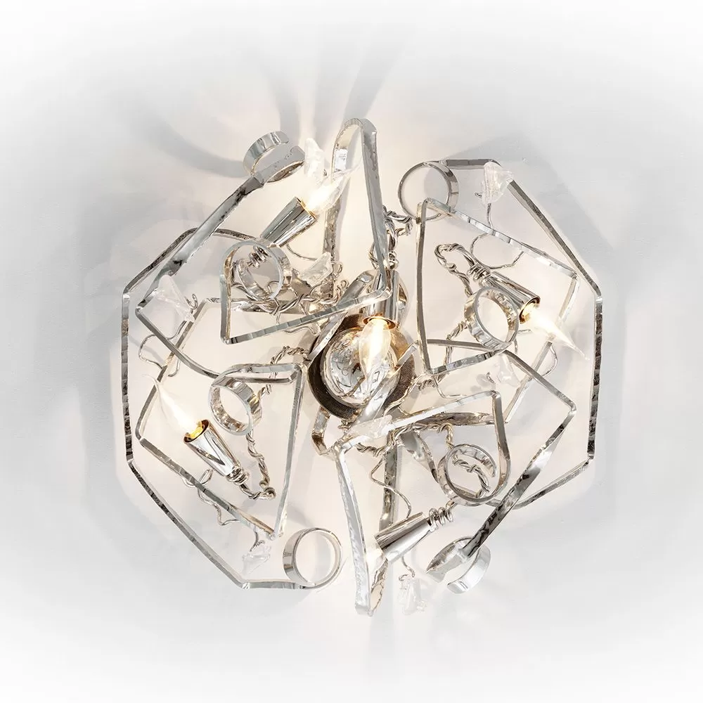 Emerging from the unconventional darkness of a blacksmith workshop is the Delphinium ceiling light – a handcrafted design that combines the bruised tactility of steel with the softness of delicate glass elements. Fashioned into graceful shapes, Delphinium evokes an almost secret longing for times bygone, but with a playful hint of sensuality. The tough masculinity of the steel in contrast with the feminine forms make this lighting sculpture universally appreciated, adding character to both stately and contemporary interiors. The Delphinium ceiling light is available in four diametres in a nickel finish.
