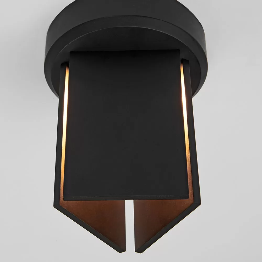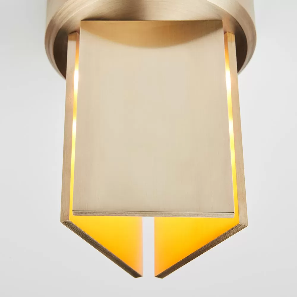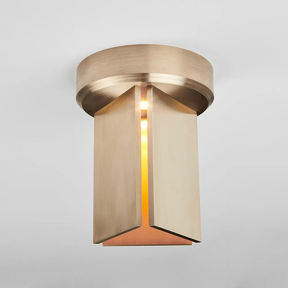 The Delta collection is part of a series of pieces originally designed by Post Company for Inness, a Hudson Valley country resort by tastemaker Taavo Somer that takes all of its cues from the surrounding landscape. Inspired by 19th-century lanterns, the collection strips down the idea to its essence, resulting in highly simplified and elegant assemblies. The attention to detail is evident. Solid metal plates soften the light like a series of louvers and create its three-sided profile.