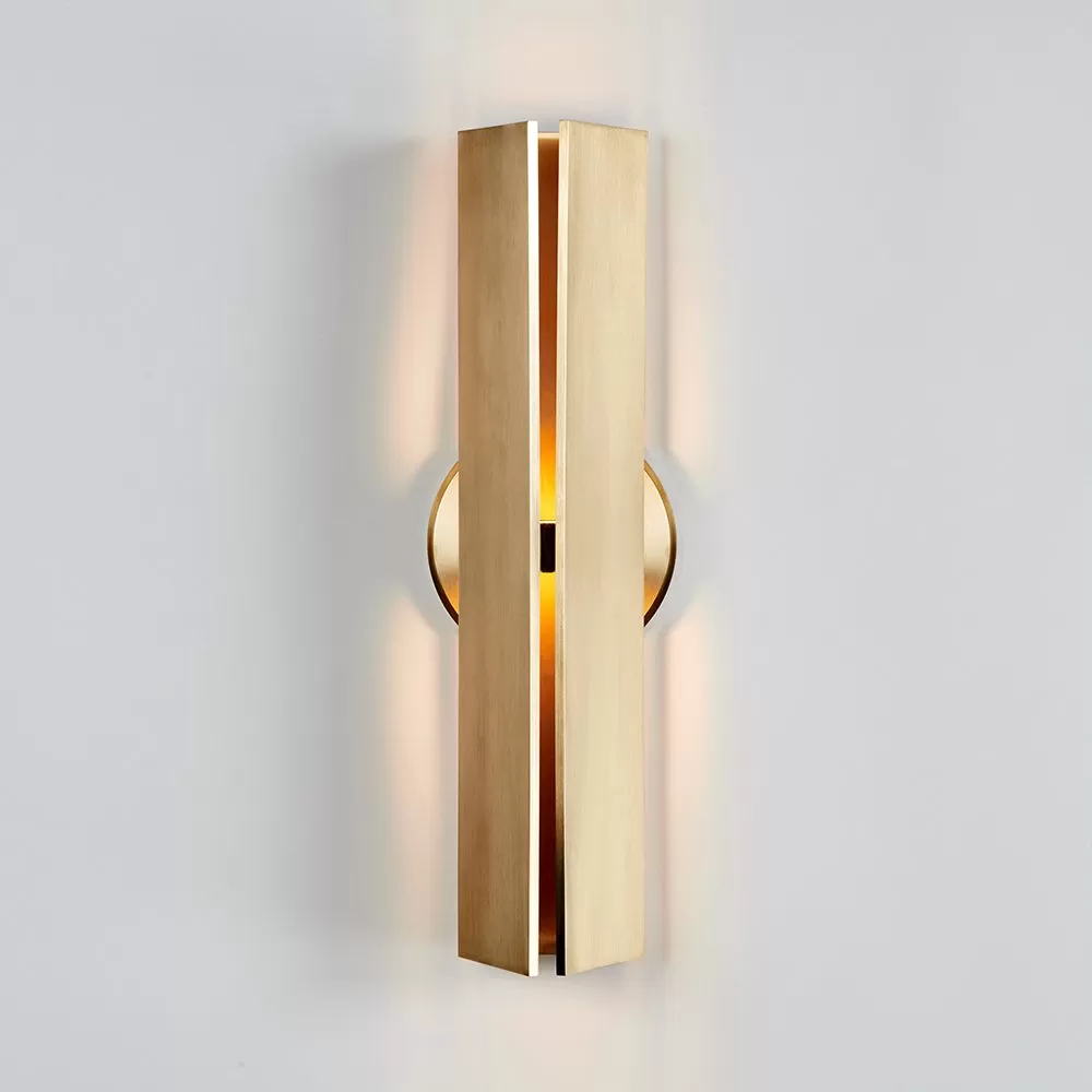 The Delta collection is part of a series of pieces originally designed by Post Company for Inness, a Hudson Valley country resort by tastemaker Taavo Somer that takes all of its cues from the surrounding landscape. Inspired by 19th-century lanterns, the collection strips down the idea to its essence, resulting in highly simplified and elegant assemblies. The attention to detail is evident. Solid metal plates soften the light like a series of louvers and create its three-sided profile.