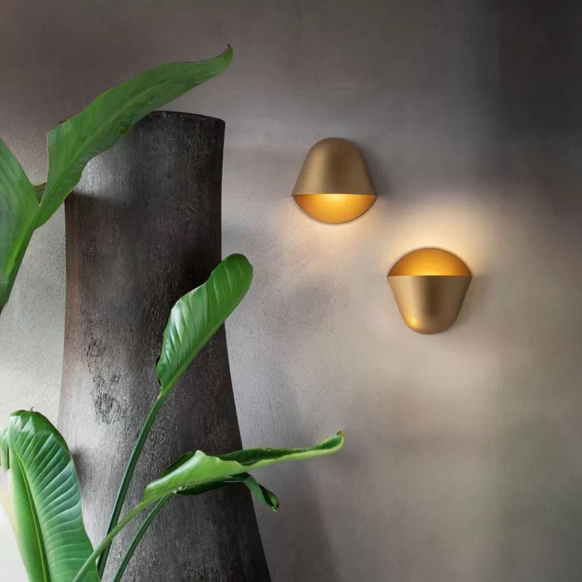 Resuming shapes from art deco, this wall lamp combines a metal sheet with a protruding half-dome. Enoki can be a single design object or combined with other similar elements, assembled with different orientations.