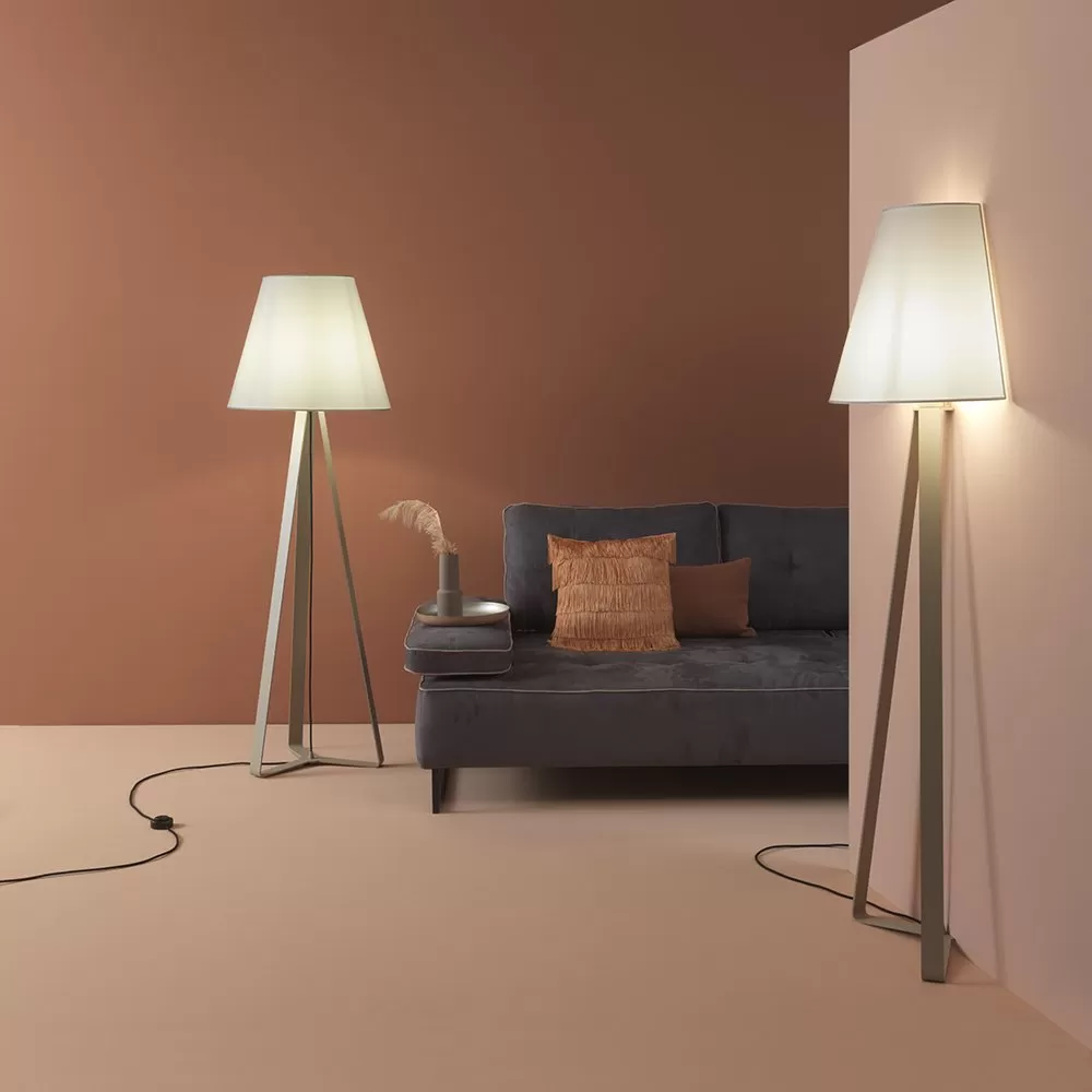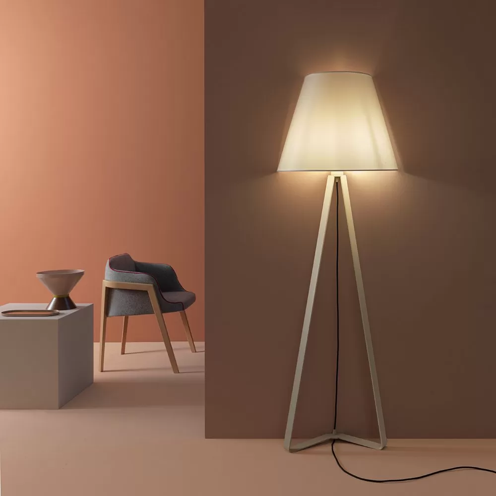 Volumes that become impalpable intersecting with the void. Etreฬ is a collection of lamps that tiptoes in different environments. Three subtle elements stretch upwards underlining the lightness of a metal structure; only delicate pinch of color of the lamp.