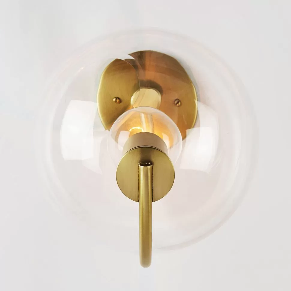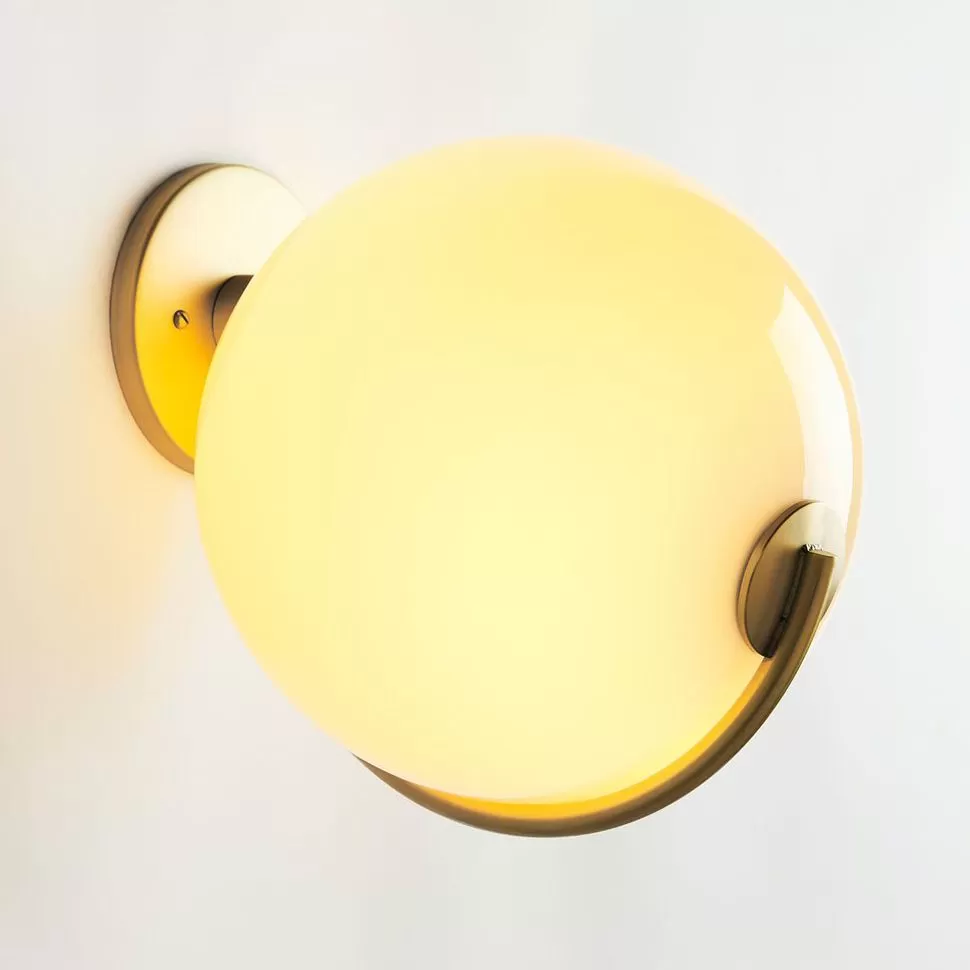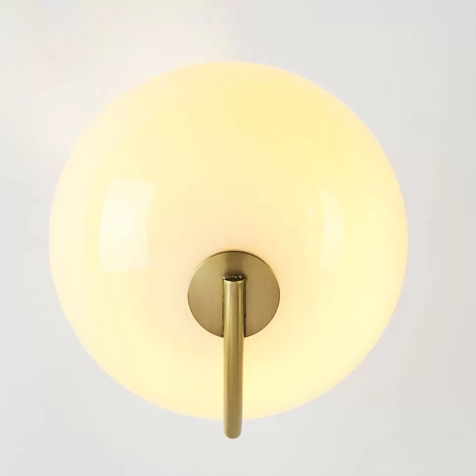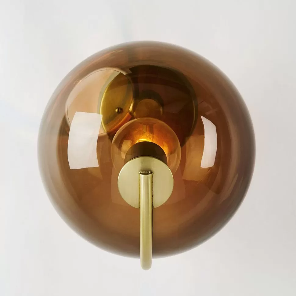 Jason Miller’s Fiddlehead derives its name from sprouting ferns. One end ofFiddlehead’s long, furling arm gently balances a hand-blown glass globe; the other uses the wall or ceiling as a counterbalance.
