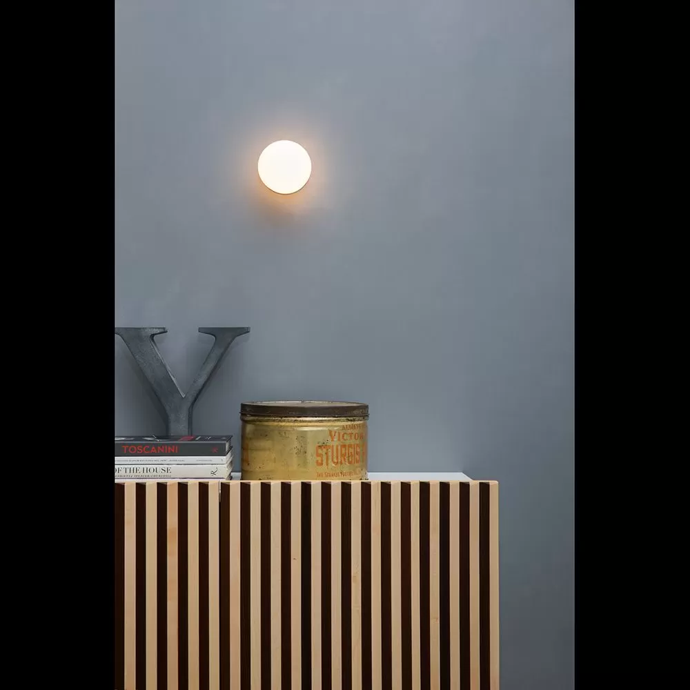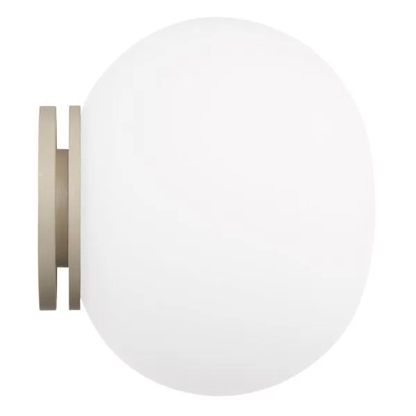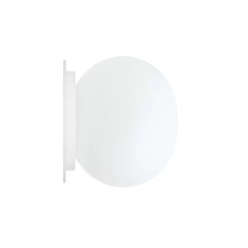 Part of the popular Glo Ball Series, the Mini Glo-Ball C/W was created by artist Jasper Morrison to invoke the radiant calm of a full moon. This unique wall or ceiling fixture provides diffused light. Its diffuser consists of an externally acid-etched, hand-blown, flashed opaline glass and a white, injection-molded PPS threaded ring nut. There is an injection-molded PPS white wall fitting. Please note, the base of the fixture will not cover a standard US junction box, a reduction ring is needed and included.