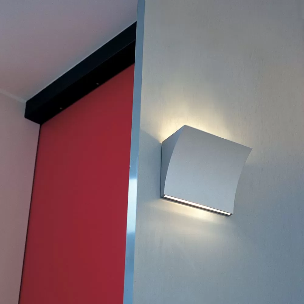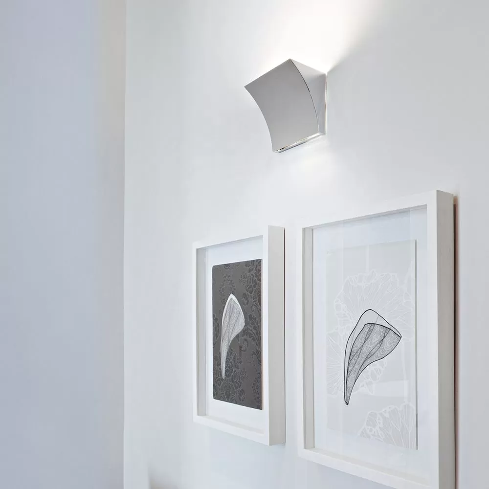 Designed by Rodolfo Dordoni, Pochette Up & Down, a new LED wall sconce providing upward and downward lighting for a harmonious indirect and direct light in residential or commercial settings. Pressure die-cast Zamak alloy, available in matte gray, white or chrome-plated finish. Molded steel, galvanized white back plate contains the wall attachment system as well as the electrical devices.