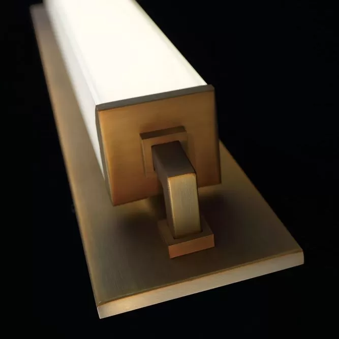 Streamline and slender. Add a luxurious touch to modern vanities in residences, resorts and restaurants with this modern LED luminaire. Mouth-blown etched mitered glass diffuses light perfectly with flattering consistent illumination that is required in bath.