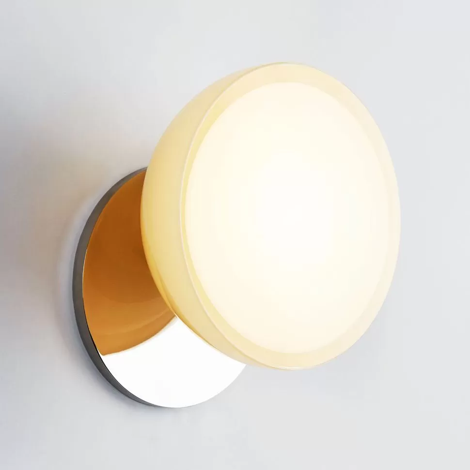 Geode is made of three layers of solid, hand-blown glass, and carefully ground to a hemisphere. The process exposes a smooth, pale center and a bold halo beneath the colored exterior.