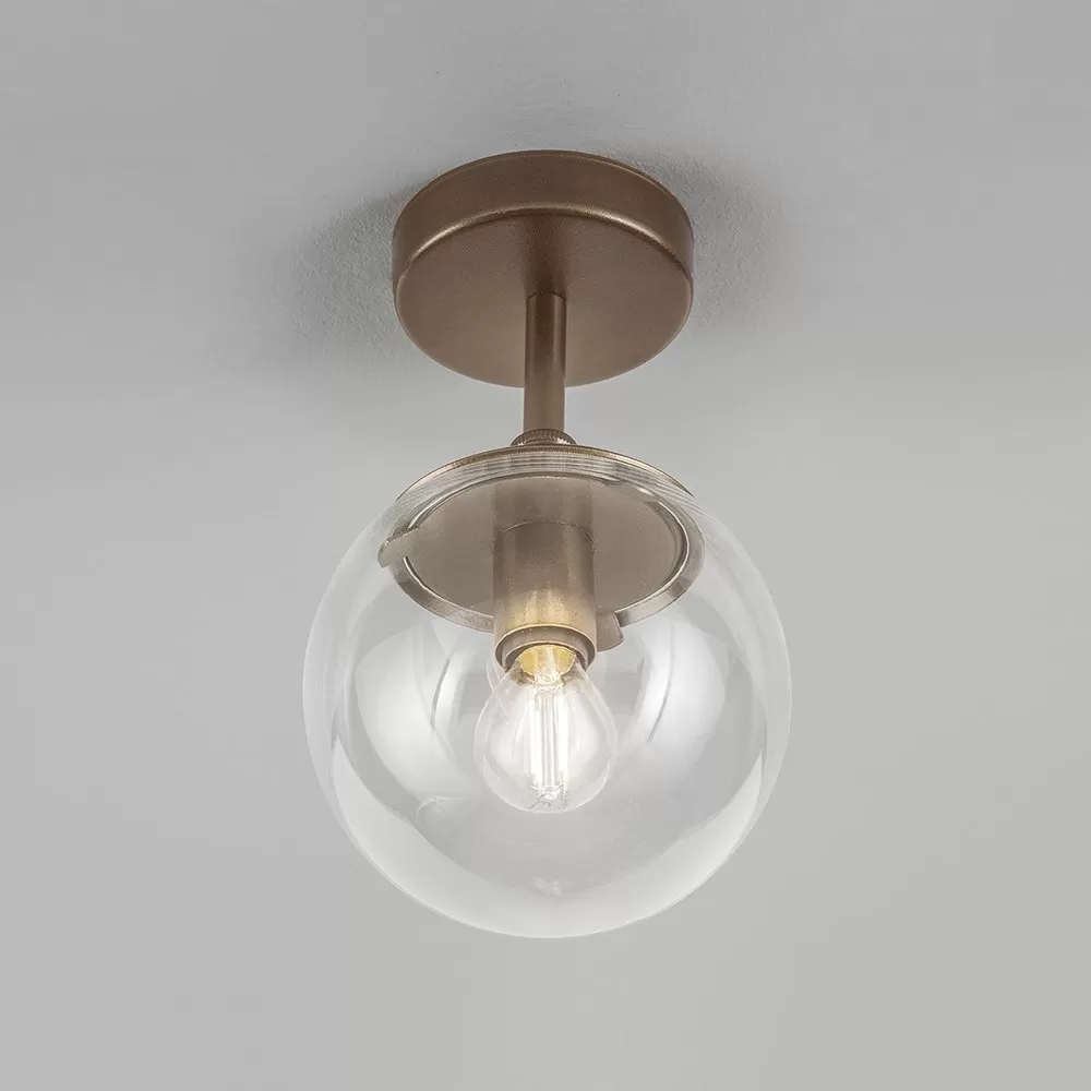 Global is the newest collection designed by Studio Tecnico Metallux. The collection comes as a result of several large-scale custom installations and strong Mid-Century influences. Global’s design is featured around its clear acrylic globe. The acrylic globe is perfect for high traffic areas where glass is not practical but design and style are necessary. The small single ceiling fixture features 1 small globe with a fixed height of 9.8”. It is available in bronze or black metal frame with clear acrylic diffuser.