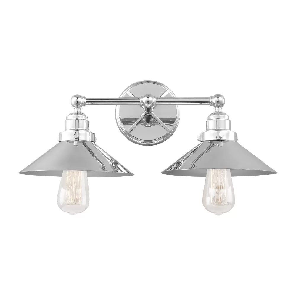 The Hooper lighting collection features exposed lamping and metal shades, pulling inspiration from vintage lighting fixtures from the Industrial Revolution.