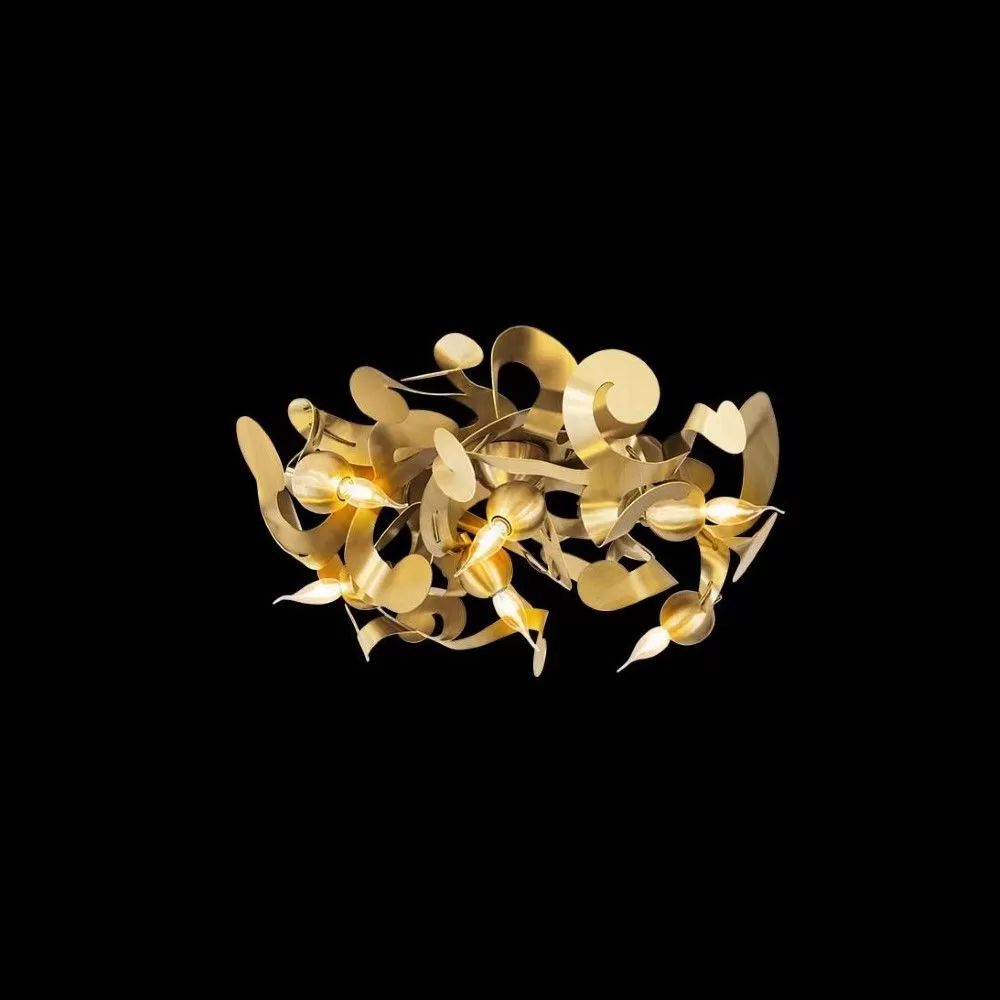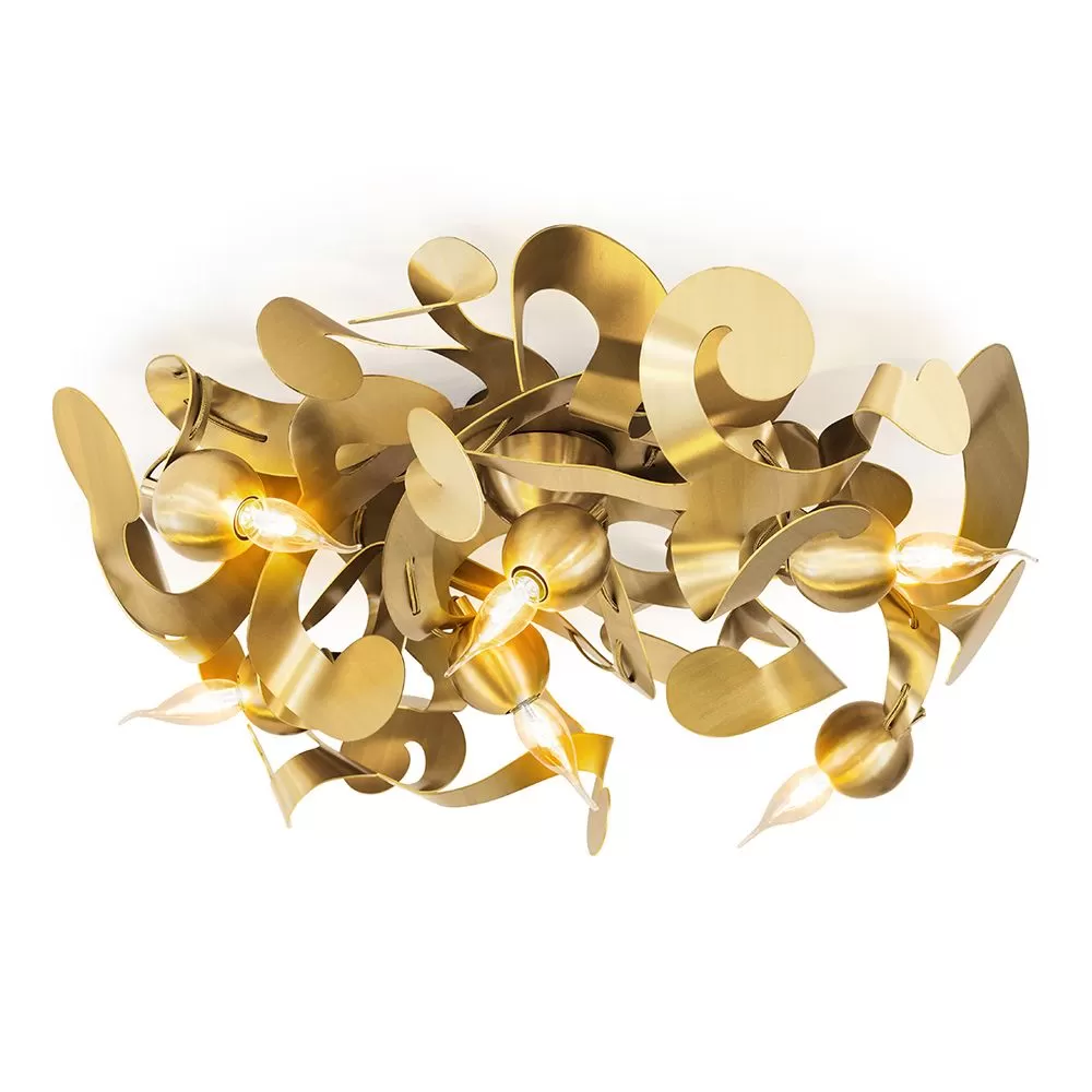 Frivolous and light-hearted, spirited and energetic, the arched and curved Kelp suspension collection dances through the air. Handcrafted from steel, this lighting sculpture features a timeless and captivating shape, with unusual, repetitive, and organic forms that are reminiscent of a crackling open fire or the beauty submerged in a vast tropical ocean. Available in two diametres, the Kelp ceiling light is offered in stainless steel, bronze, copper, brass, brass aged or grinded, black matte, or white matte. There is also the option of contrasting the finish of the light globes with the rest of Kelp, allowing for greater personalization.