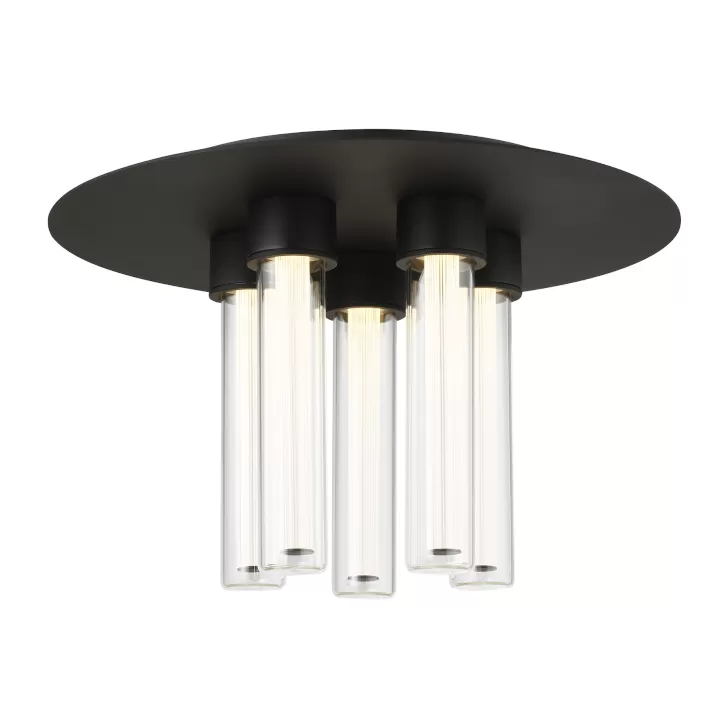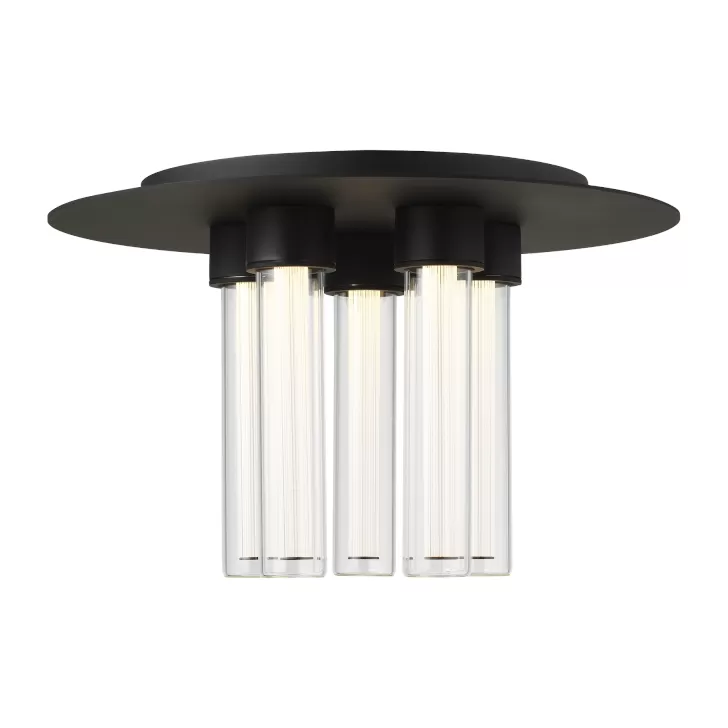 Kola by Sean Lavin is a statement Flush Mount with meticulously laser etched acrylic and designed within blown glass cylinders. Multiple illuminated cylinders are mounted on a slim metal base creating a clean and functional fixture. Available in modern finishes.