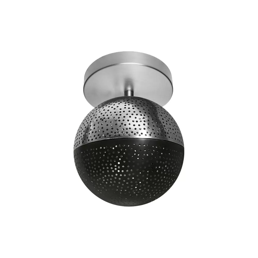 Kora- A ball-shaped semi-Flush light, hand pierced metal shade allows the light to shine through casting mesmerizing shadows onto the walls. This is our way of modernizing the Moroccan spherical lanterns. It was designed to highlight the rich natural beauty of copper, brass and nickel silver. These semi-precious metals are durable, eco-friendly and rich in color. Featuring a timeless, architectural form, this luxe ceiling light is a showstopper and will earn you serious design credibility.
