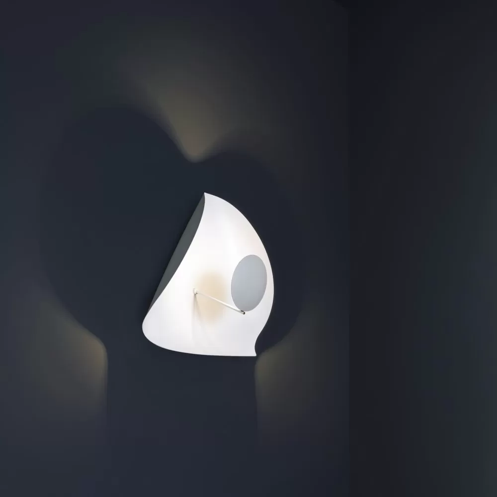The Lederam Manta CWS1 Ceiling/Wall Lamp is a new addition to the popular Lederam collection. Comprised of two discs, the larger disc has an undulating curve, like the wings of a manta ray. The smaller disc has a nickel joint and attaches to the larger via metal rod. Light emanates from the smaller disc onto the undulating larger disc, casting a beautiful ambient glow for wall or ceiling light. Available in different colour combinations that include white, gold, satin, black, and copper.