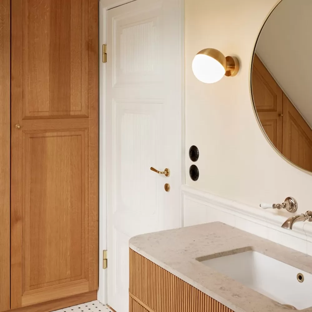 The fixture emits a glare-free, diffused light. The triple-layered opal glass provides pleasant and uniform illumination of the area around the fixture. The lampshade can be tilted 90 degrees to the right or left, which allows for flexible light distribution.