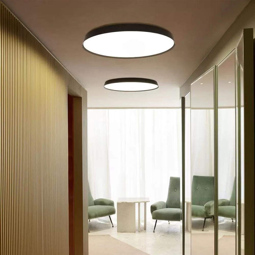 The external profile in brushed extruded aluminium conserves the slim original thickness, creating a surface almost flush with the wall. In spite of its extremely slender design, Compendium Plate provides extraordinary lighting efficiency combined with a clean form and extreme elegance.