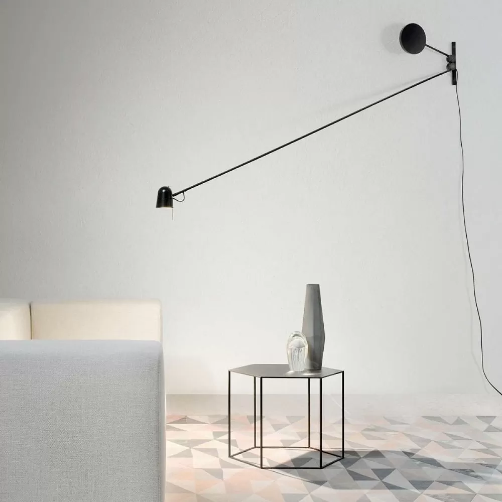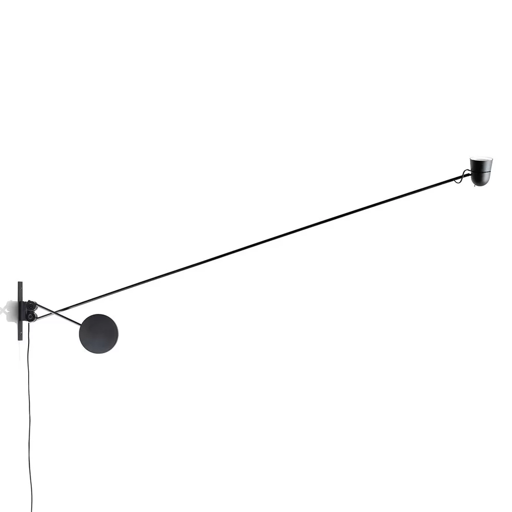 An object that seems to defy the laws of physics. Positioned as desired in space, the essential Counterbalance LED lamp, with its position variation, suggests the dynamic equilibrium of a sculptural mobile. Equipped with a fluid balancing system using gear wheels, the counterweight compensates for the movements of the long arm and ensures stability of the diffuser.