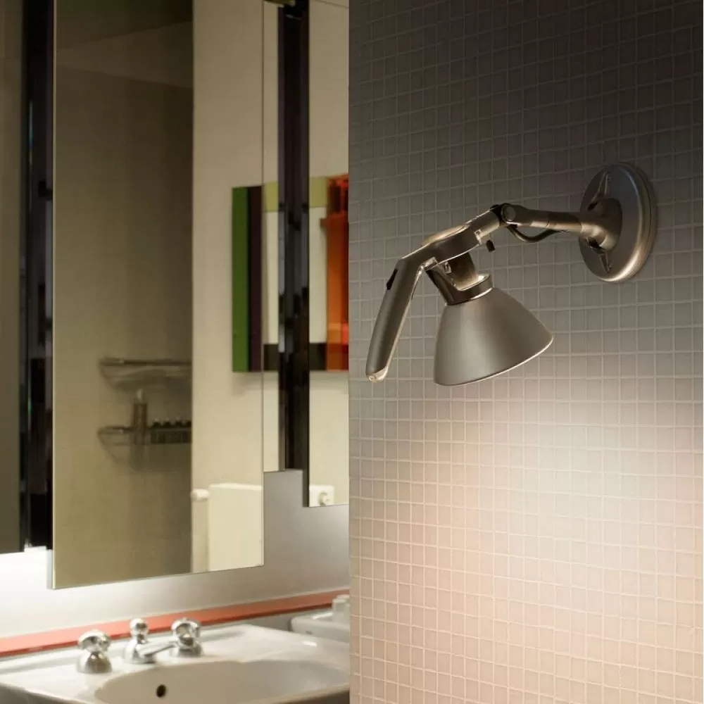 Fortebraccio guarantees a total light positioning freedom. The lamp’s distinctive handle conveys a highly charismatic, formal look, and provides an intelligent solution to the problem of directing light emission. Moulded in polycarbonate, it includes a switch and is designed in such a way as to be easily held and manoeuvred.