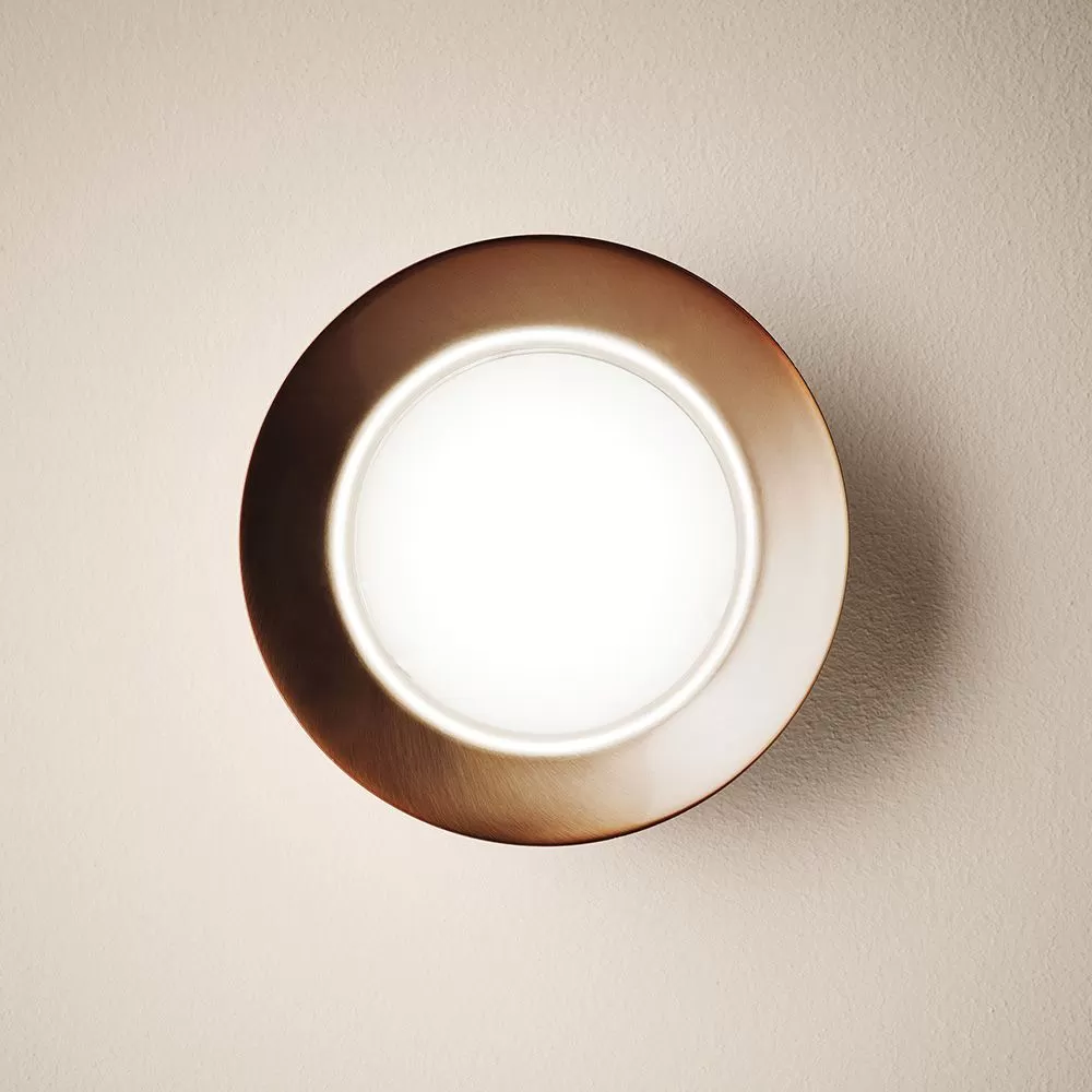 Metallic flush mount /wall sconce providing direct light. Acrylic bottom diffuser.
