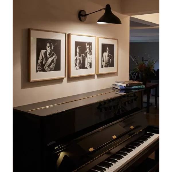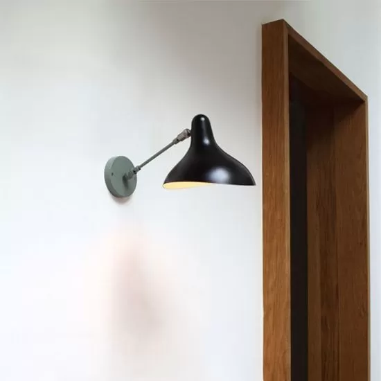 As admirer of Alexander Calder, in 1951, Schottlander created the Mantis series of lamps. Movement is intrinsic to the design, devised as a clever system of counterweights, combined with a series of strong and flexible metal bars. The shade, inspired by Calder’s organic shapes, resembles an acrobat suspended in mid-air. This wall lamp adds rhythm to a corridor and pairs nicely with side tables, over a headboar or a desk.
