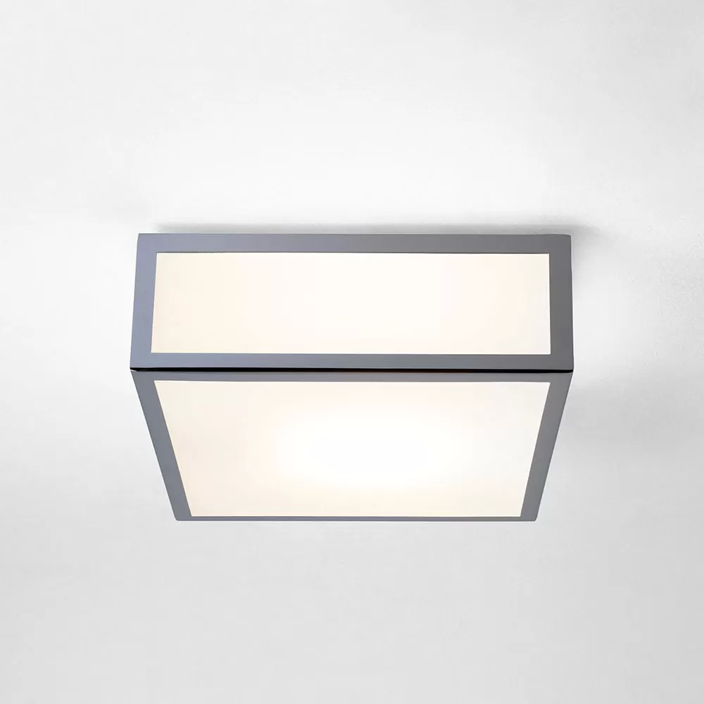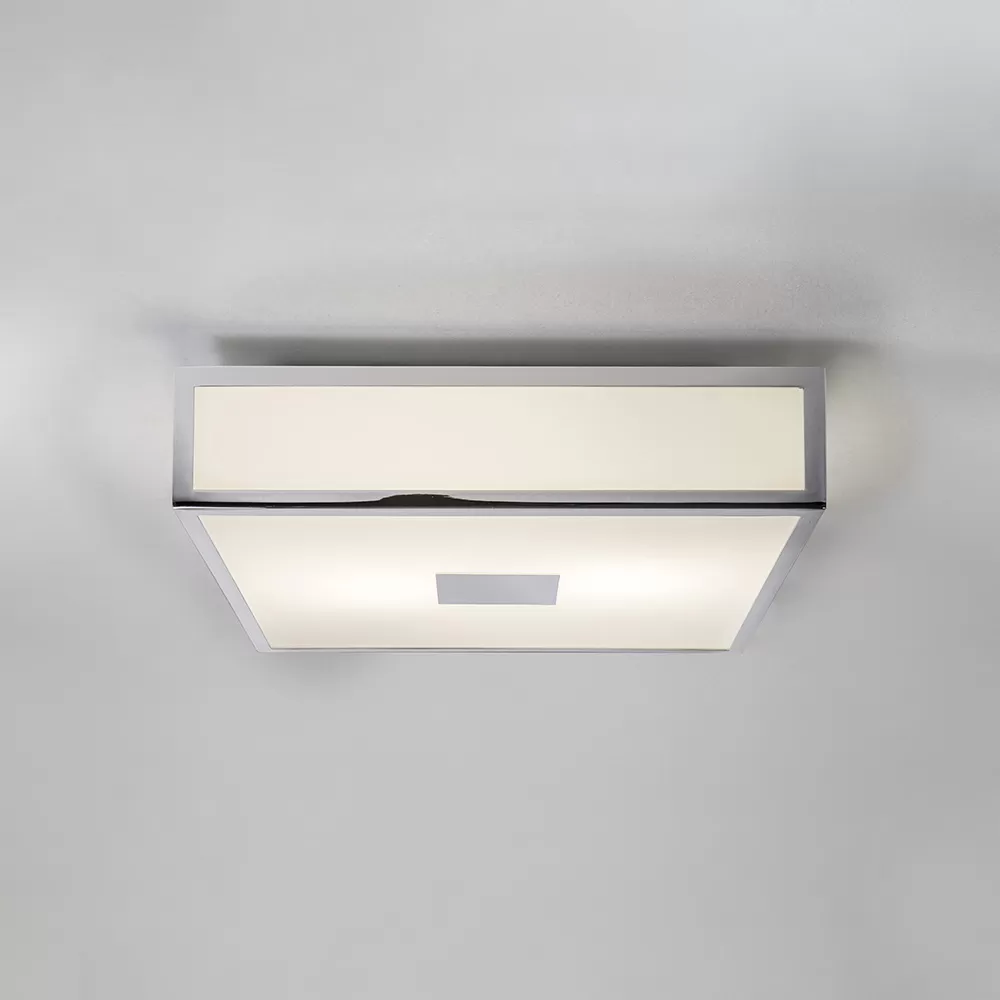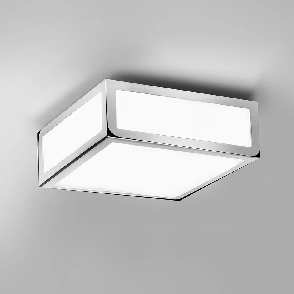 The Astro Mashiko square bathroom ceiling light finished in polished chrome features an elegant design made from steel. This compact ceiling light works well when placed centrally, or if several are evenly spaced to illuminate larger areas. Soft ambient light is delivered through the frosted glass diffuser and can be dimmed when paired with a dimmable E26/Medium bulb. Made from a steel construction, the Mashiko is a high-quality, durable ceiling light and is supplied with Astro’s 3 year guarantee.