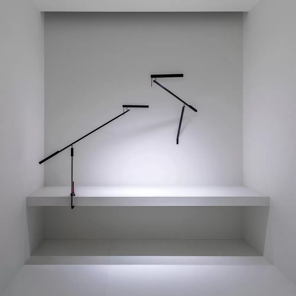 Davide Groppi brings the clean lines and buoyant presence of the Morsetto table light to wall fixtures with Morsetto P wall light. An integrated LED head at the head of three adjustable arms, Morsetto P appears almost as weightless as a bird in flight amongst the trees.