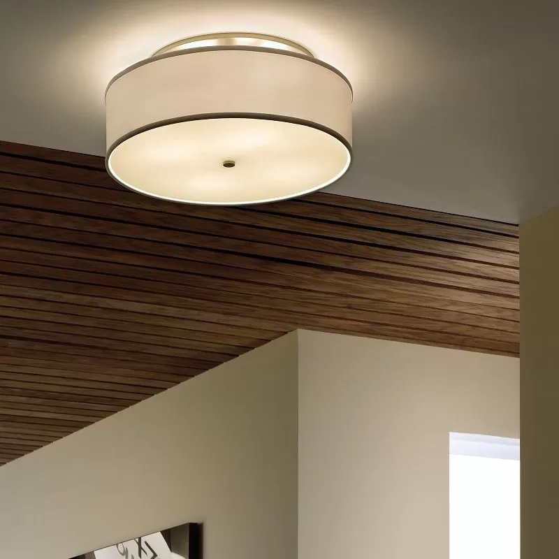 The Mulberry ceiling light by VC Modern is classic and sophisticated with its short fabric drum shade and round canopy. A white glass diffuser conceals the lamping inside while providing a glare-free wash of light onto surfaces below. Also available in the Mulberry family is the Mulberry Pendant, simply search for Mulberry Ceiling to find its closest relatives. Available in multiple color options to compliment a Satin Nickel finish. Mount this contemporary fixture in places such as hallways, bathrooms and closets. Available lamping options include energy efficient LED and no-lamp. All LED lamping options are fully dimmable to create the desired ambiance in your special space.