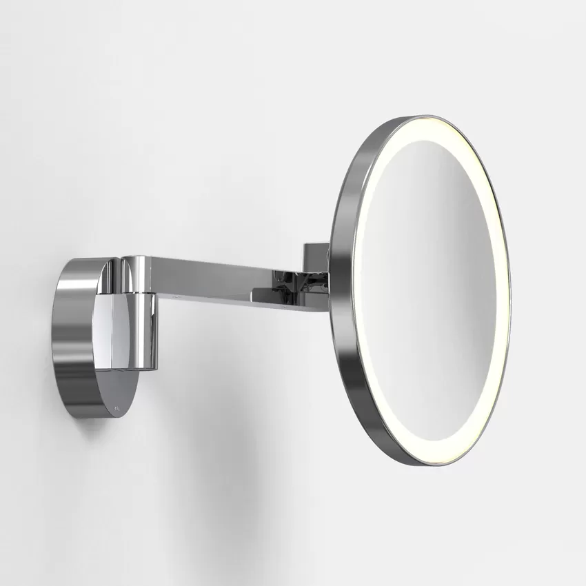 This clean, contemporary illuminated magnifying mirror is invaluable in a bathroom for shaving or applying makeup. Featuring a fully adjustable arm and neck to direct the mirror exactly where it is required.
