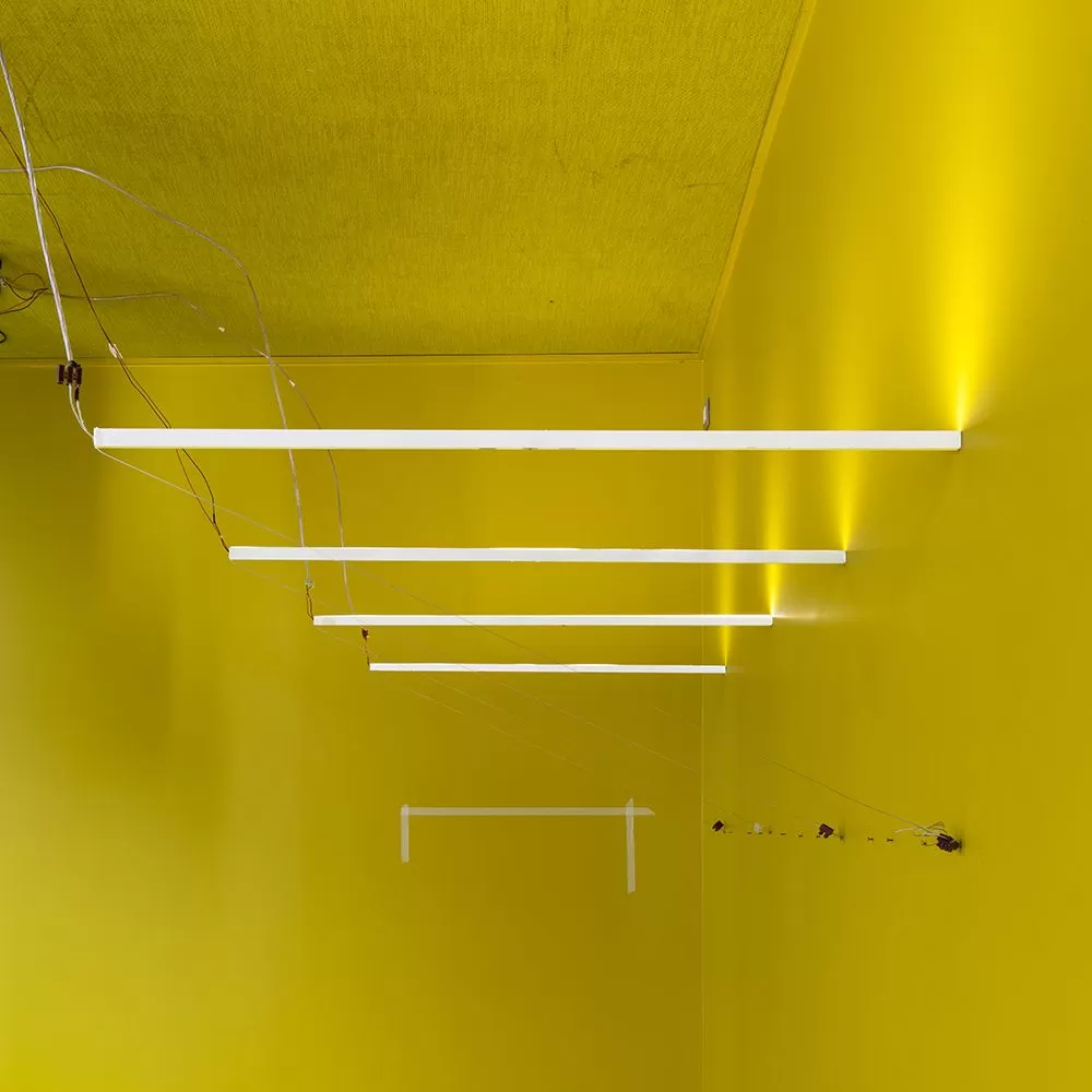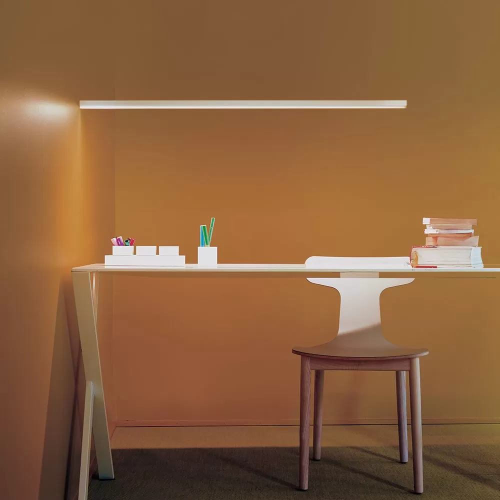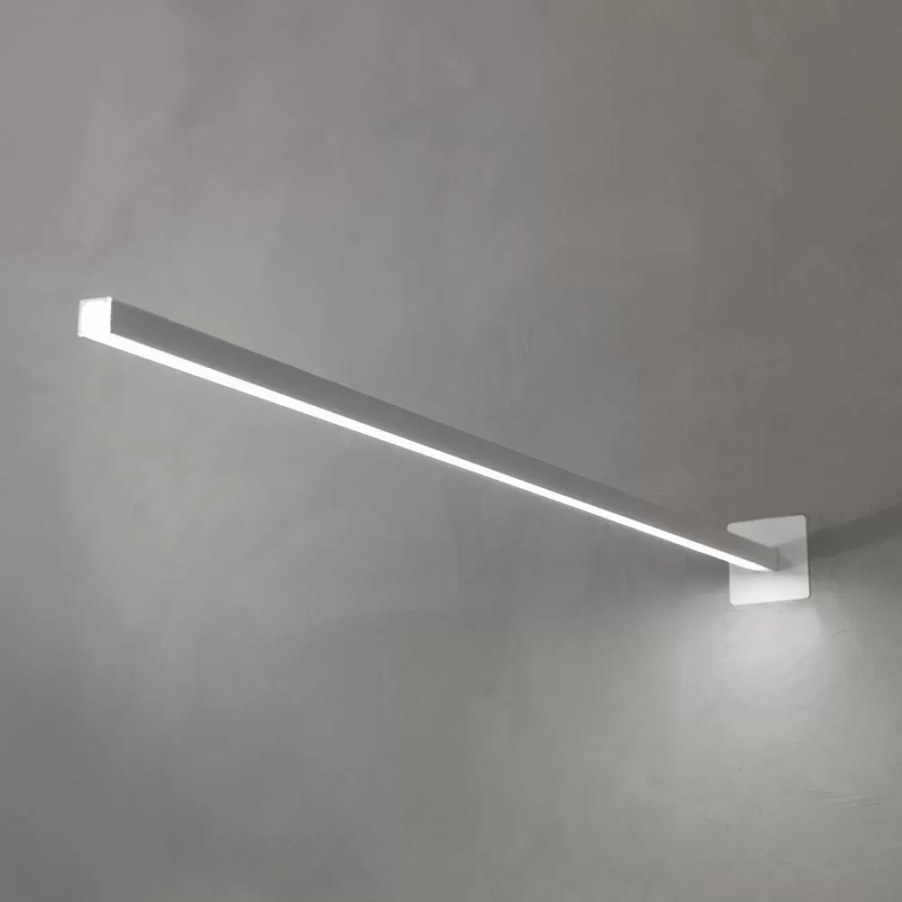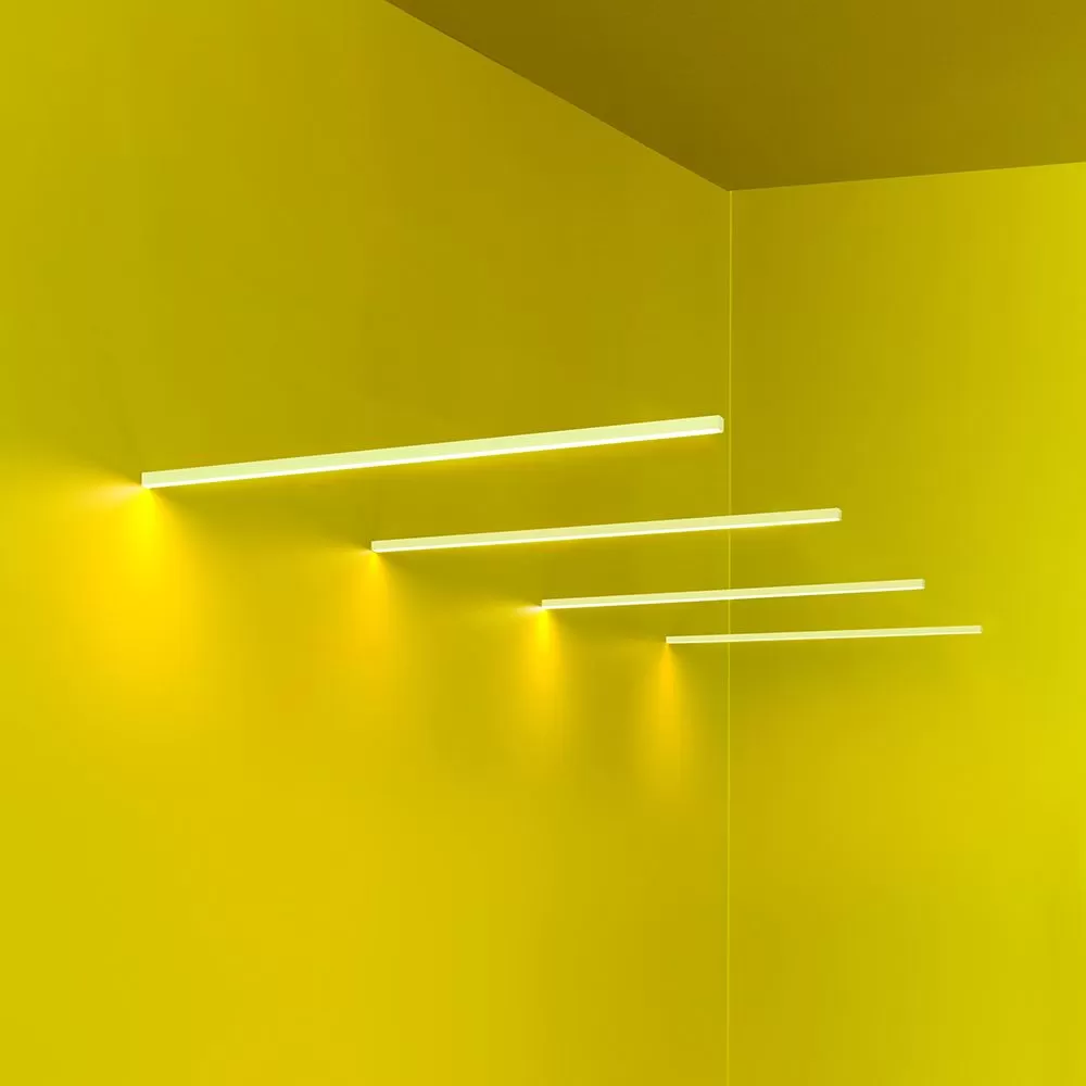 Family of floor, ceiling and wall elements, efficient with an highly versatile linear luminous output. Body in aluminium extruded and opal white polycarbonate diffuser. Horizontal cantilever wall version supplied with kit for connection with remote driver. White or balck finishing with elements in grey painted on the floor and wall versions.