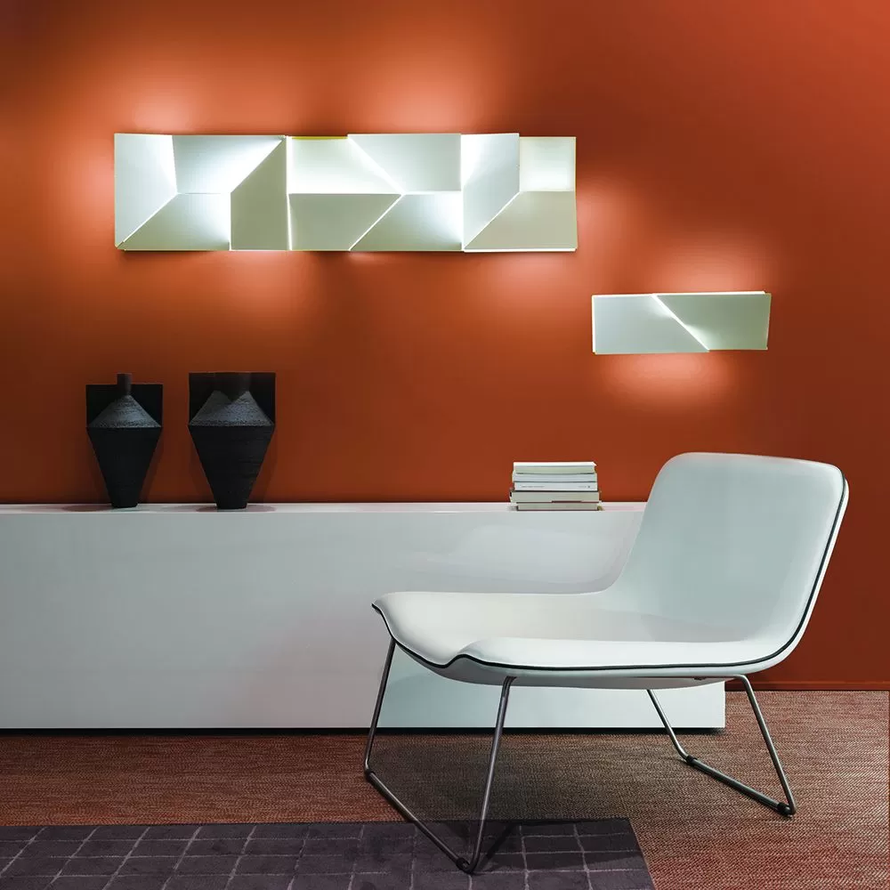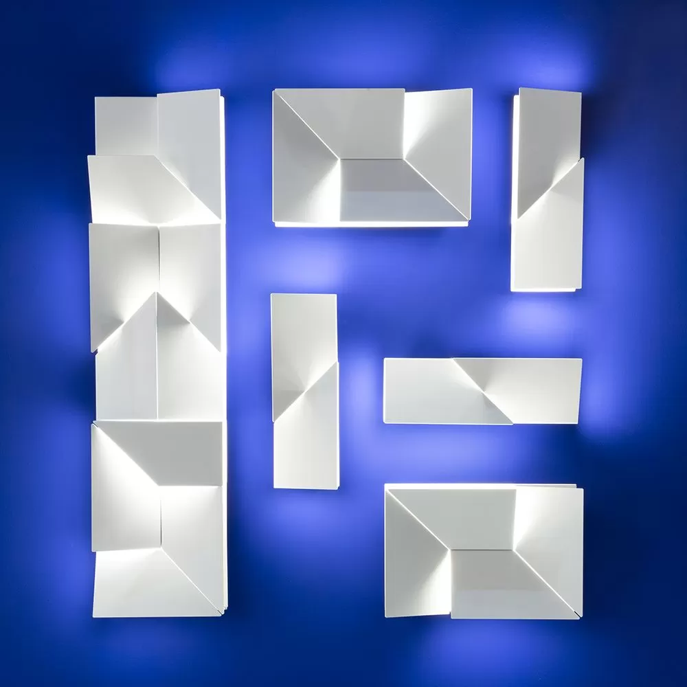 Family of wall lamps for diffused LED lighting. Available in several sizes in matt white powder coated aluminum.