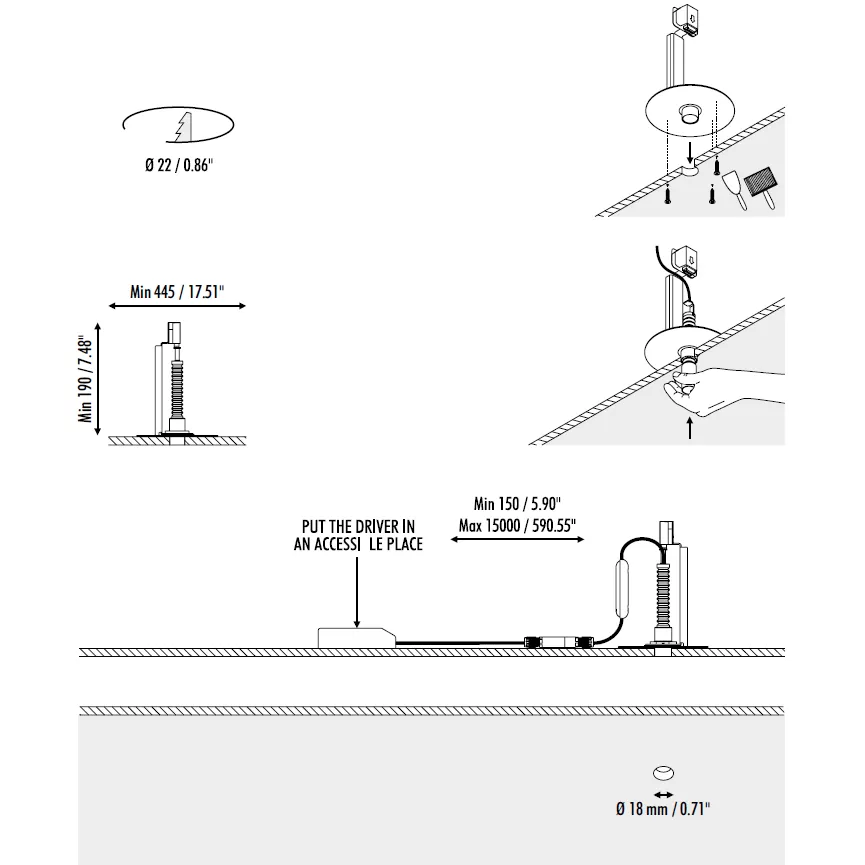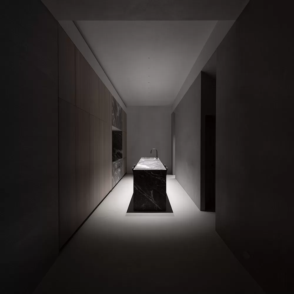 It is the most generous of our lamps, the one that hides for the sole purpose of giving the scene to the illuminated subject. A very small hole in the ceiling, a very powerful LED and a lens, awarded Compasso d’Oro ADI in 2014.