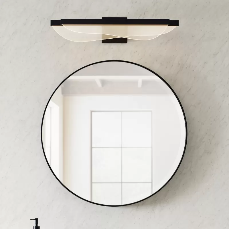 The Nyra 25 Bath Bar by Sean Lavin features beautifully layered waves of LED panels truly reflecting the essence of modern LED art. Available in modern finishes. Nyra features two beautifully suspended acrylic blades, making it a statement piece as each panel emits a generous amount of illumination with light guide technology.