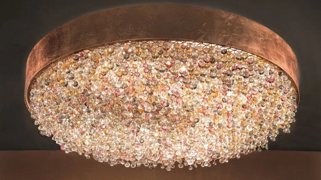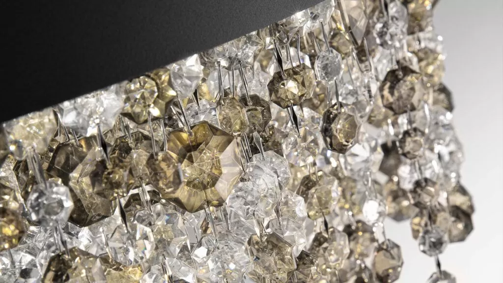 A jewel of design born from a synthesis of experience and creativity. Designed more than a decade ago by Masiero’s creative atelier, the contrast between its simple metal frame and luxurious cascade of pendants makes Olà a Masiero icon.
