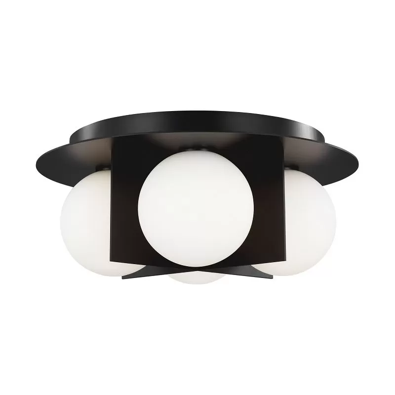 The Orbel Collection by Sean Lavin is inspired by Mid-Century modern art with contrasting geometric shapes. The Orbel Flush Mount features a circular canopy that supports alternating metal squares and four frosted spheres of light. Designed with a 15� diameter, the Orbel Flush Mount is available in modern finishes. Coordinate your design with other fixtures in the Orbel Collection, such as the Wall Sconce, Bath Light and Pendants. Lamping options are compatible with most dimmers. Refer to the Dimming Chart for more information.