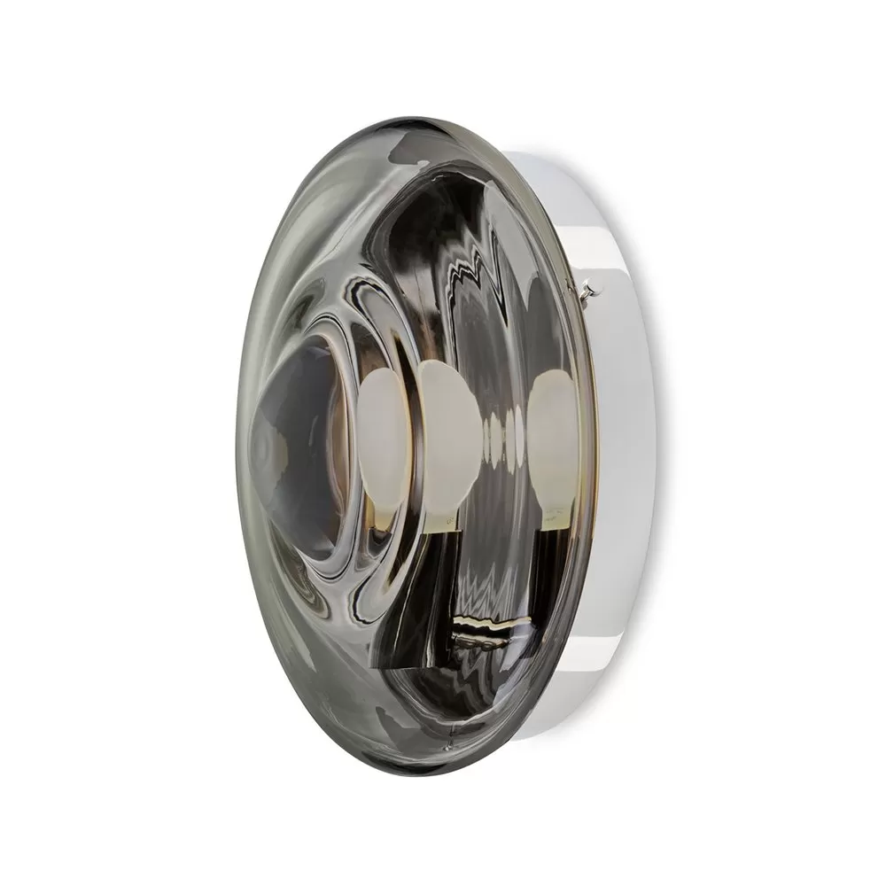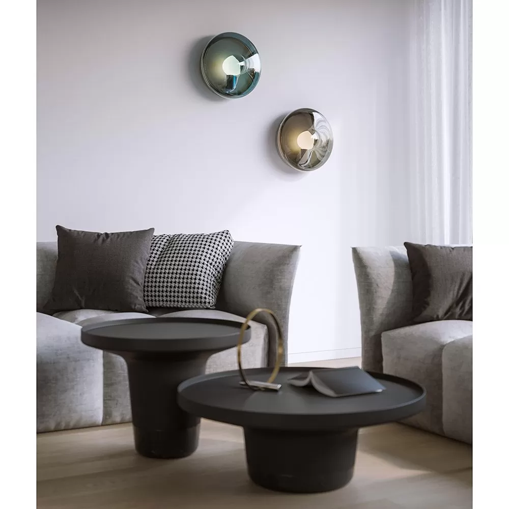 BOMMA’s Orbital traces paths of multicoloured celestial bodies that glow with hypnotically red-hot cores. This ingenious design of mouth-blown glass lenses, held together by a metal mounting, creates a fascinating visual experience from many different angles. These unique lighting objects lend a truly magical atmosphere to any sophisticated interior.