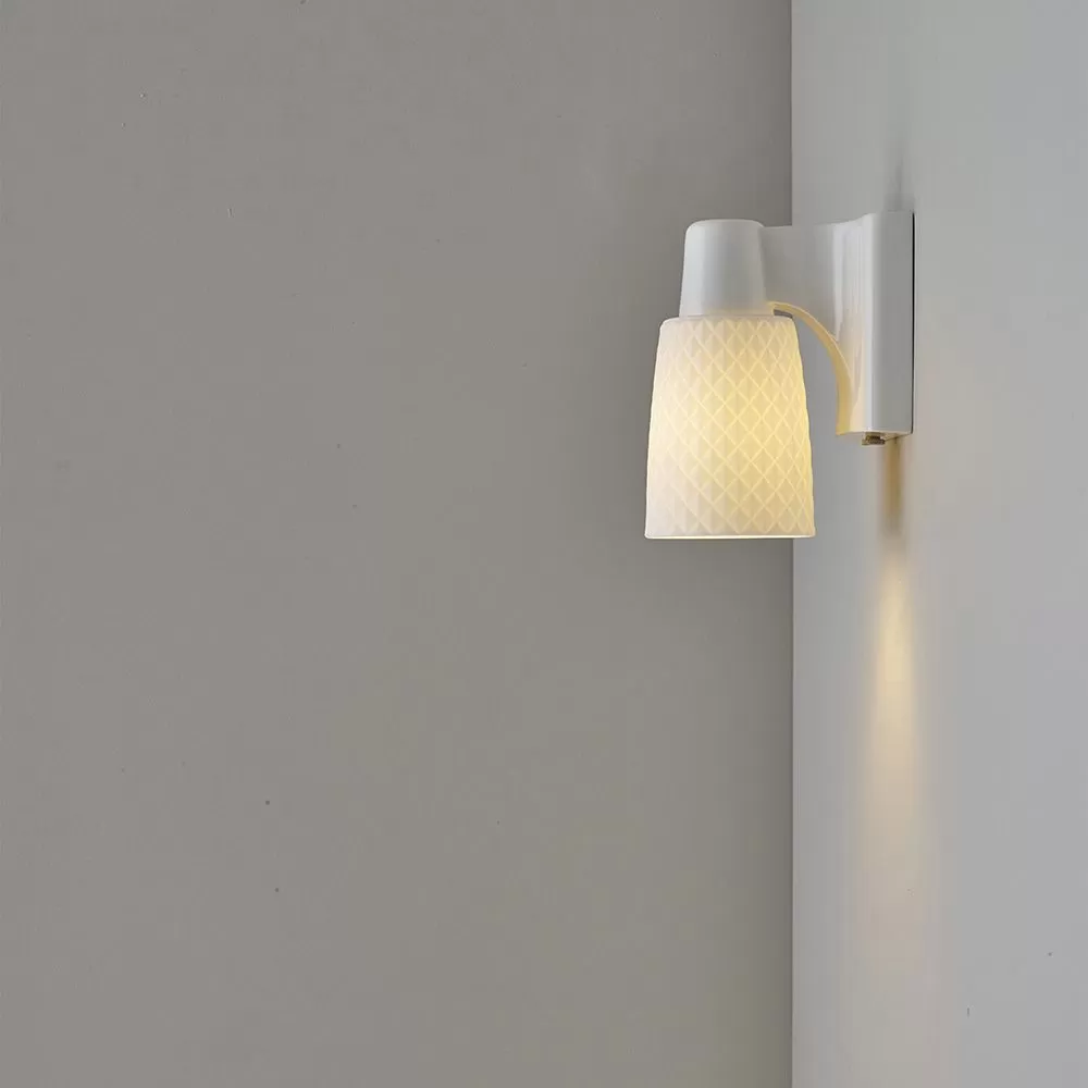 The classic bone china wall light has been developed, to include a new design, using a quilted bone china shade. The textural finish, not only exudes notable quality but also creates an interesting tonal illumination, as the light interacts with the shade’s surface. Handmade in Stoke-on-Trent, the smooth, contemporary bone china base complements the style, making it an attractive option for hallways, bedrooms and kitchens. Choose between a pitched or conical style, depending on the space-the wider pitched shade is more open with a larger light base, whilst the conical option offers a concentrated direct down light source.