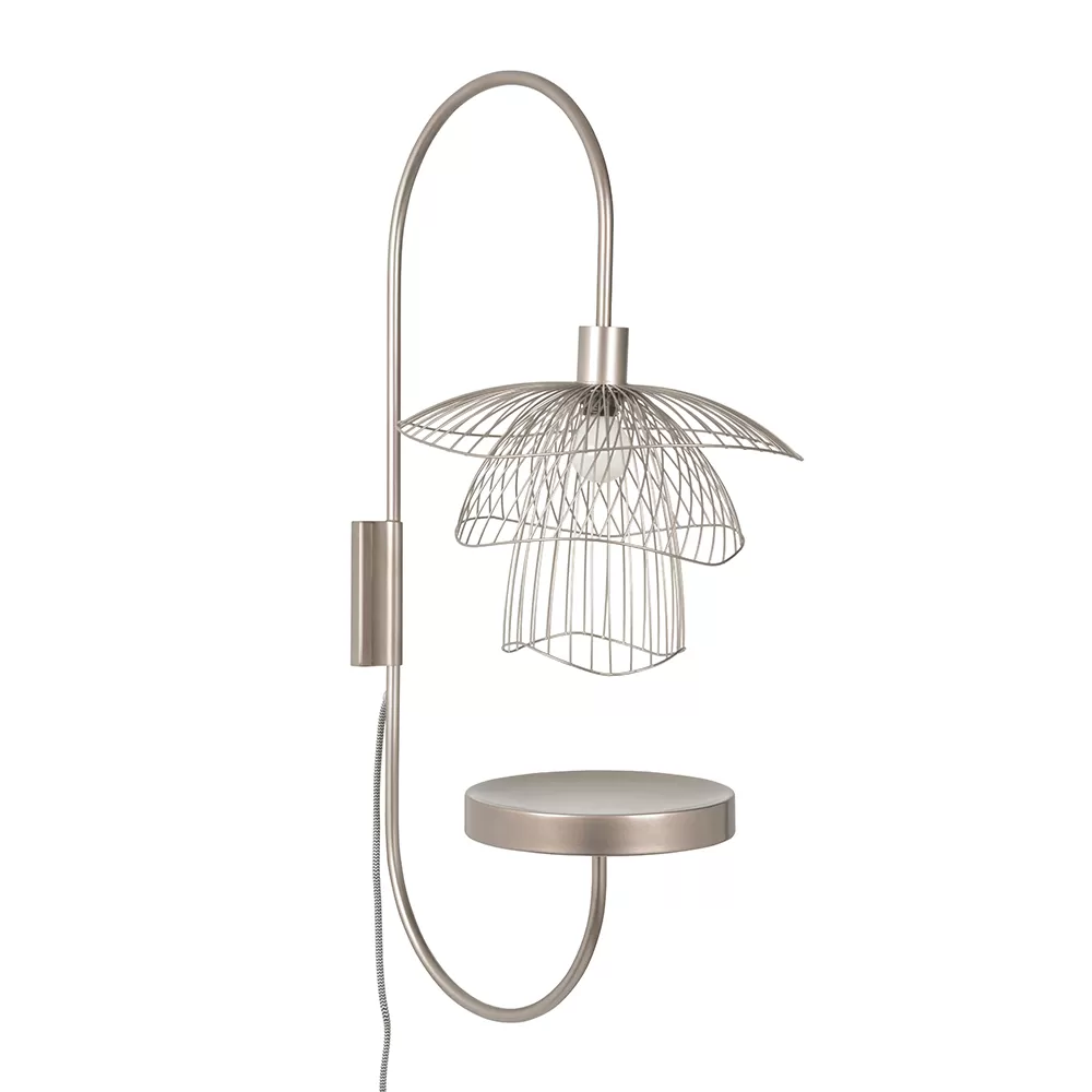 It’s amazing what can cause the wing flutter of a butterfly … an airy light that flies at the whim of its inspiration. Three frames of twisted metal wire entangle and overlap giving the effect of a floating graphic rose, as in levitation.