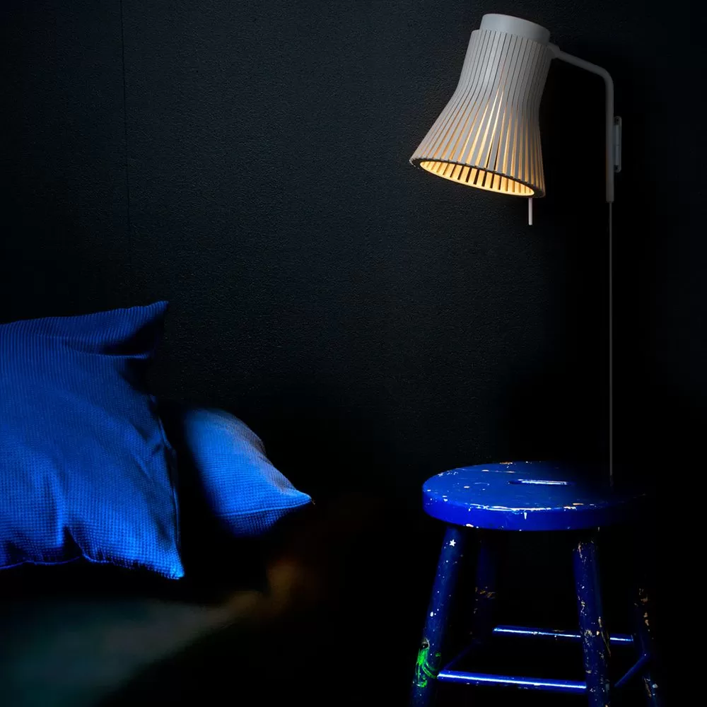 Adjustable wall light that turns from side to side. The shade can be pointed which makes the Petite wall light a perfect companion for instance by the bed! Available in all four finishes. Handmade of PEFC-certified formpressed birch in Finland by highly skilled craftsmen. The wood provides a soft luminosity for atmosphere and appeal.