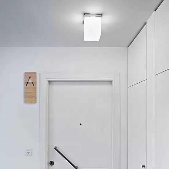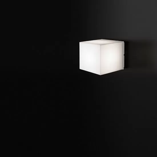 Wall or ceiling lamp with an opal white polycarbonate diffuser and aluminum base painted in matte white. Electronic equipment.
