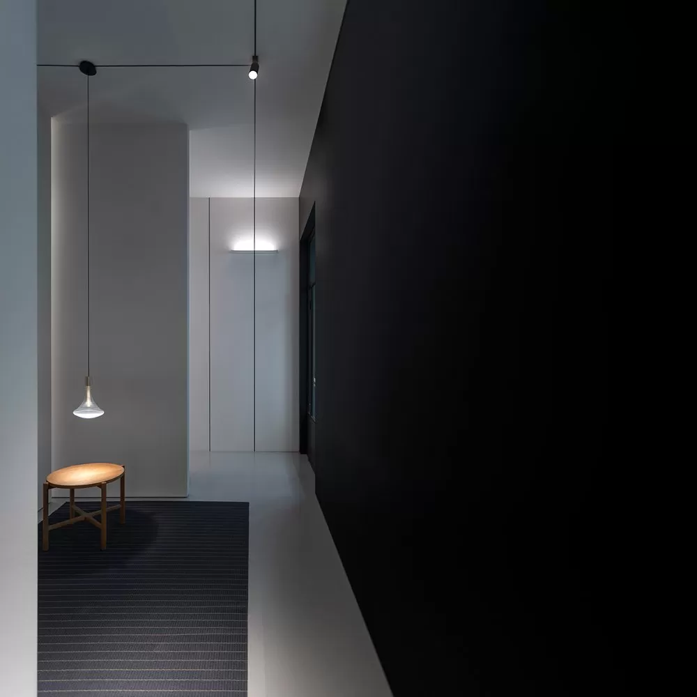 A powerful LED and a thin mirror, for a light that multiplies spaces and gives the eye unprecedented perspectives, unexpected depths, illusions of light.
