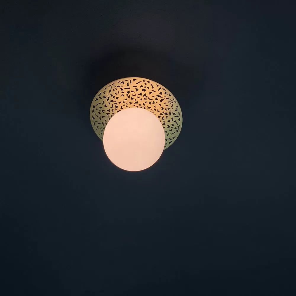 Riad semi-flush mount light represents the best of modern Moroccan metalwork and craftsmanship. We designed this minimal hand-cut filigree light fixture to give the classic pattern a modern update. Each one is handcraft and is ethically made start to finish by our group of master artisans. Handmade to order in small batches, every wall sconce comes with a hand-numbered tag.
