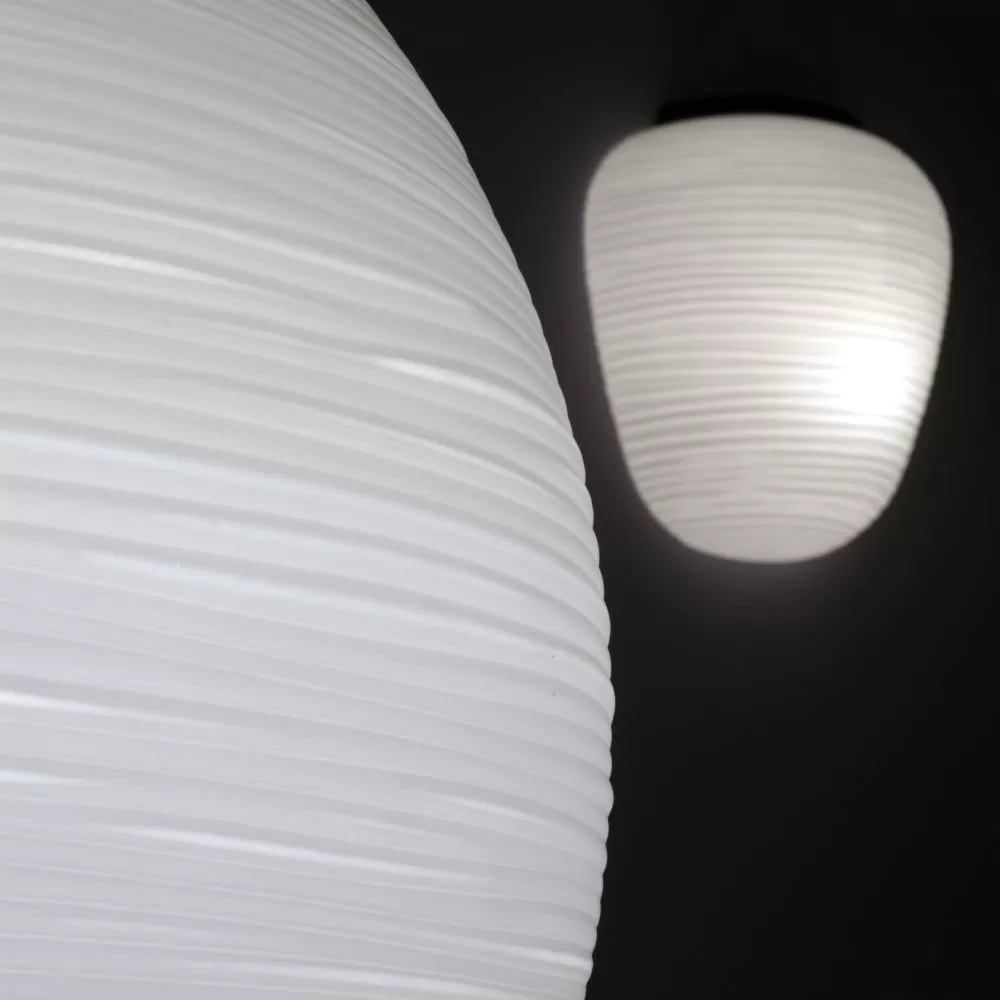 The Rituals lamps speak the language of beauty and poetry. They are made with hand-blown glass marked by thin engravings which recall the art of grinding and create a warm, vibrant light.