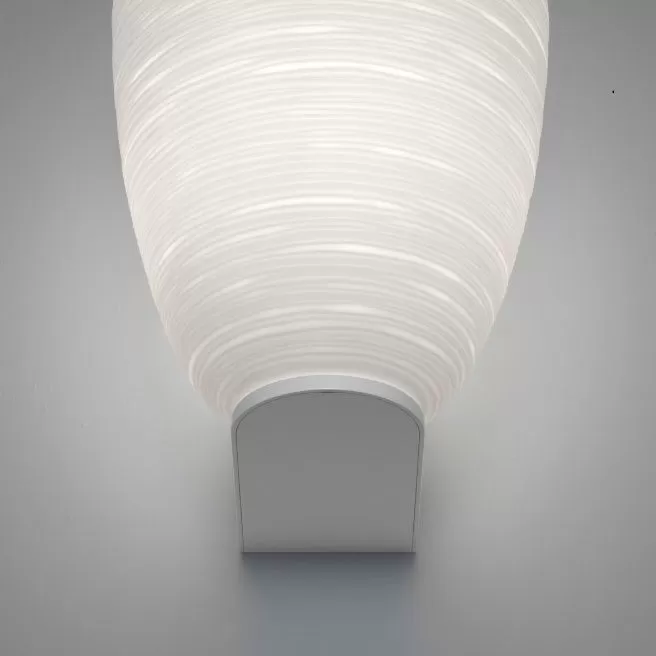 Rituals translates the luminous magic of oriental rice paper lanterns into the precious physical form of blown glass. The special glass working method, with irregular lines that mark the surface, creates a delicate, fascinating decoration that produces a unique sensation of chiaroscuro and a soft and gentle light. The mount of Rituals wall resembles the pedestal of a work of art. Its upside down L-shaped form offers different solutions: it hosts two glass sizes, can take two different positions and is also available in a version that supports two diffusers.