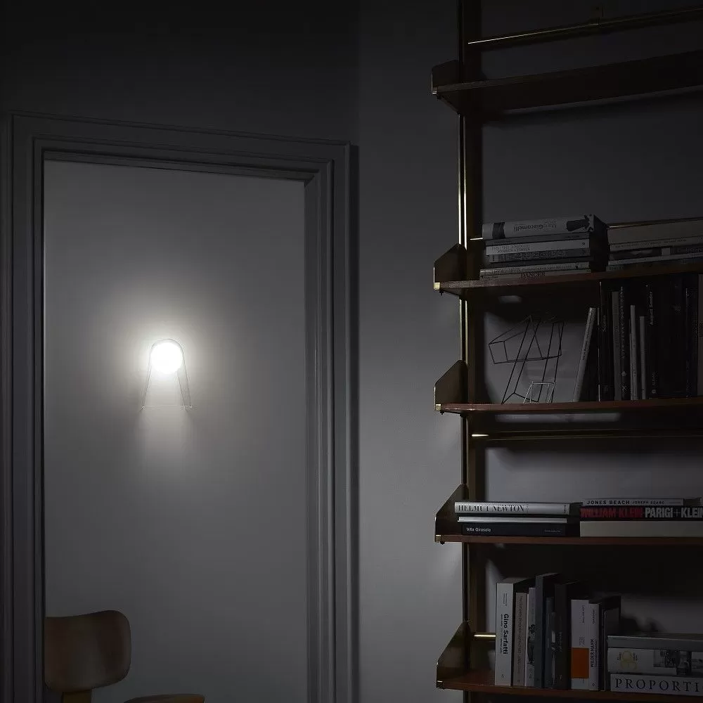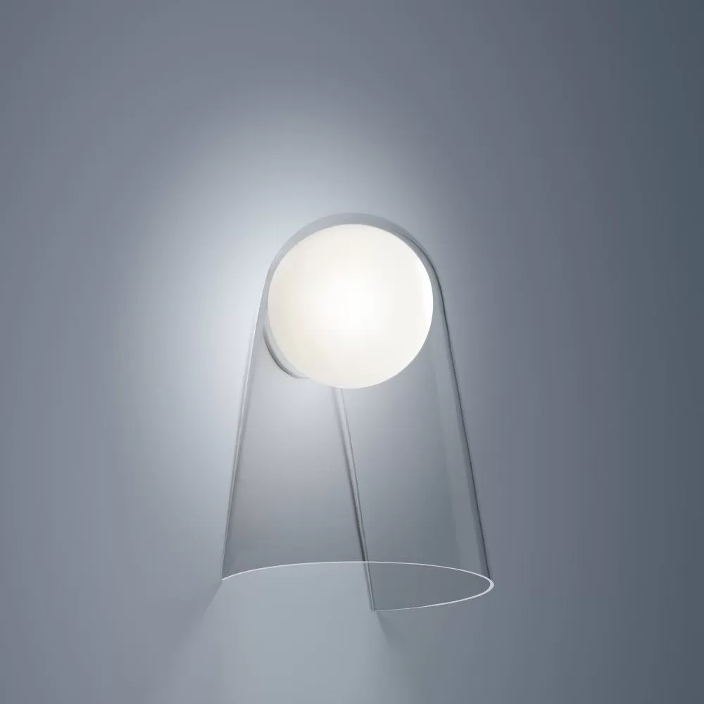 With a visual effect similar to transparent glass drape, the Satellight wall lamp has a soft, dreamy glow that is diffused by a satin-finish glass globe. Also available in a suspended and table version. This contemporary wall sconce is powered by energy efficient LED technology.